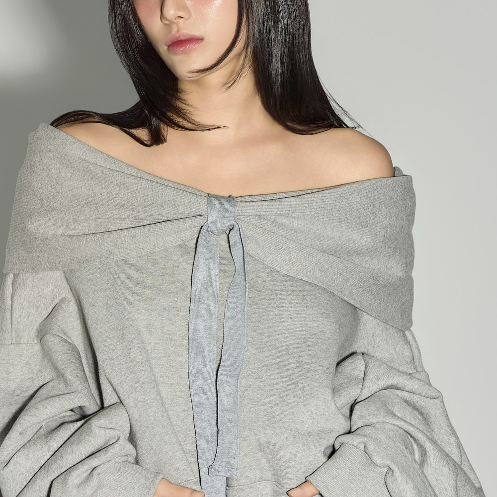 오프숄더 디자인에 넥라인이 리본 디테일처럼