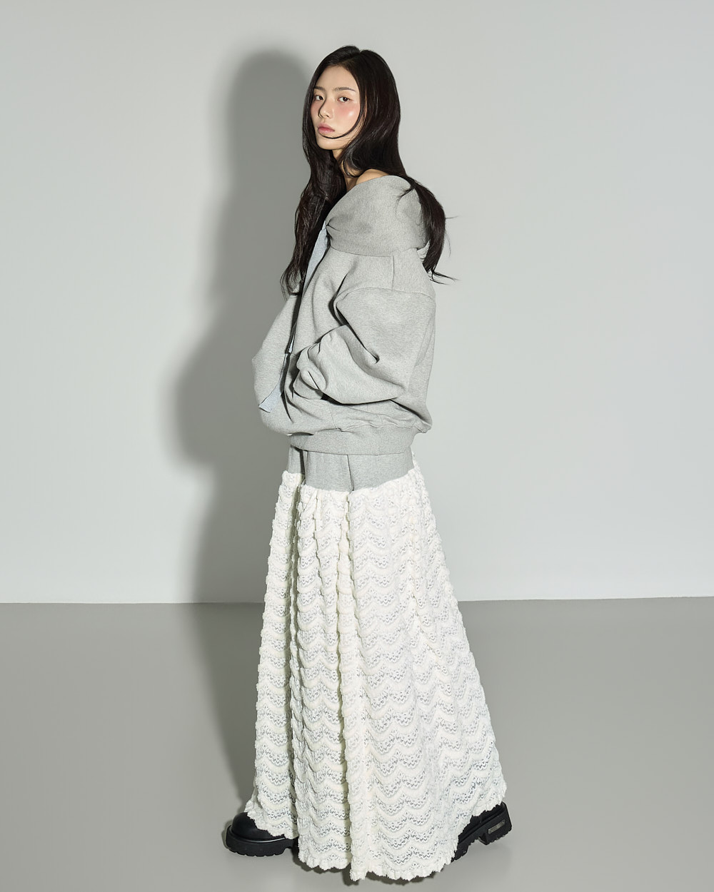 171CM 모델 ONE 사이즈, GRAY 컬러 착용하였습니다.