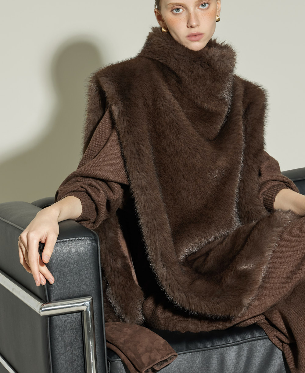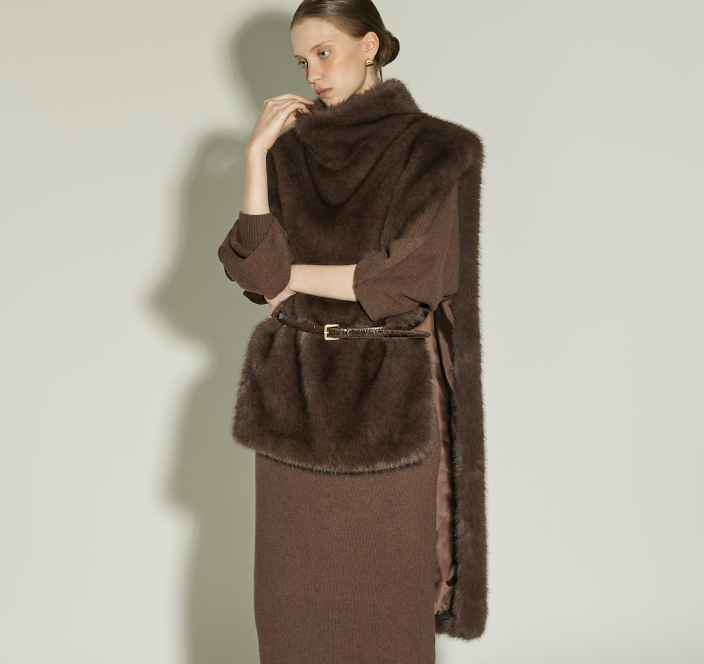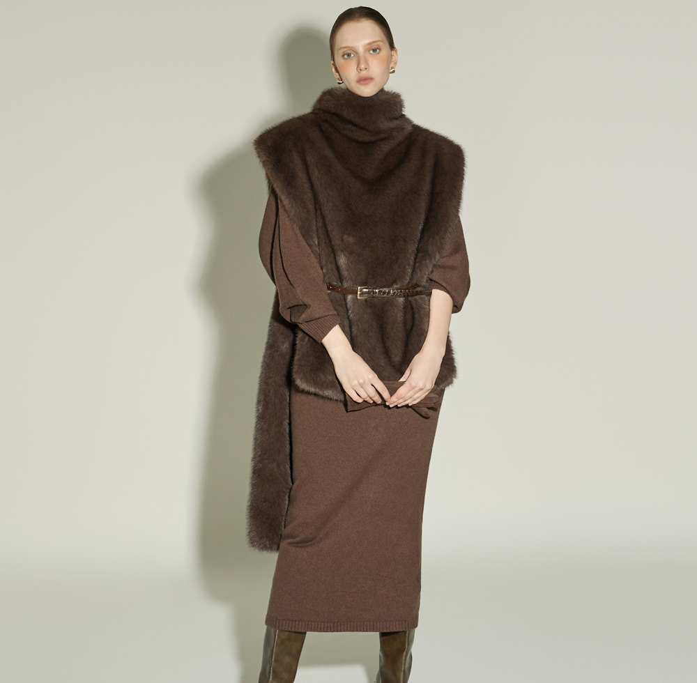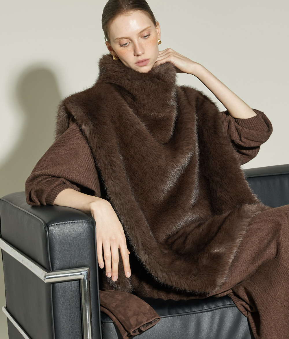 우아한 무드의 터틀넥 퍼 베스트입니다.