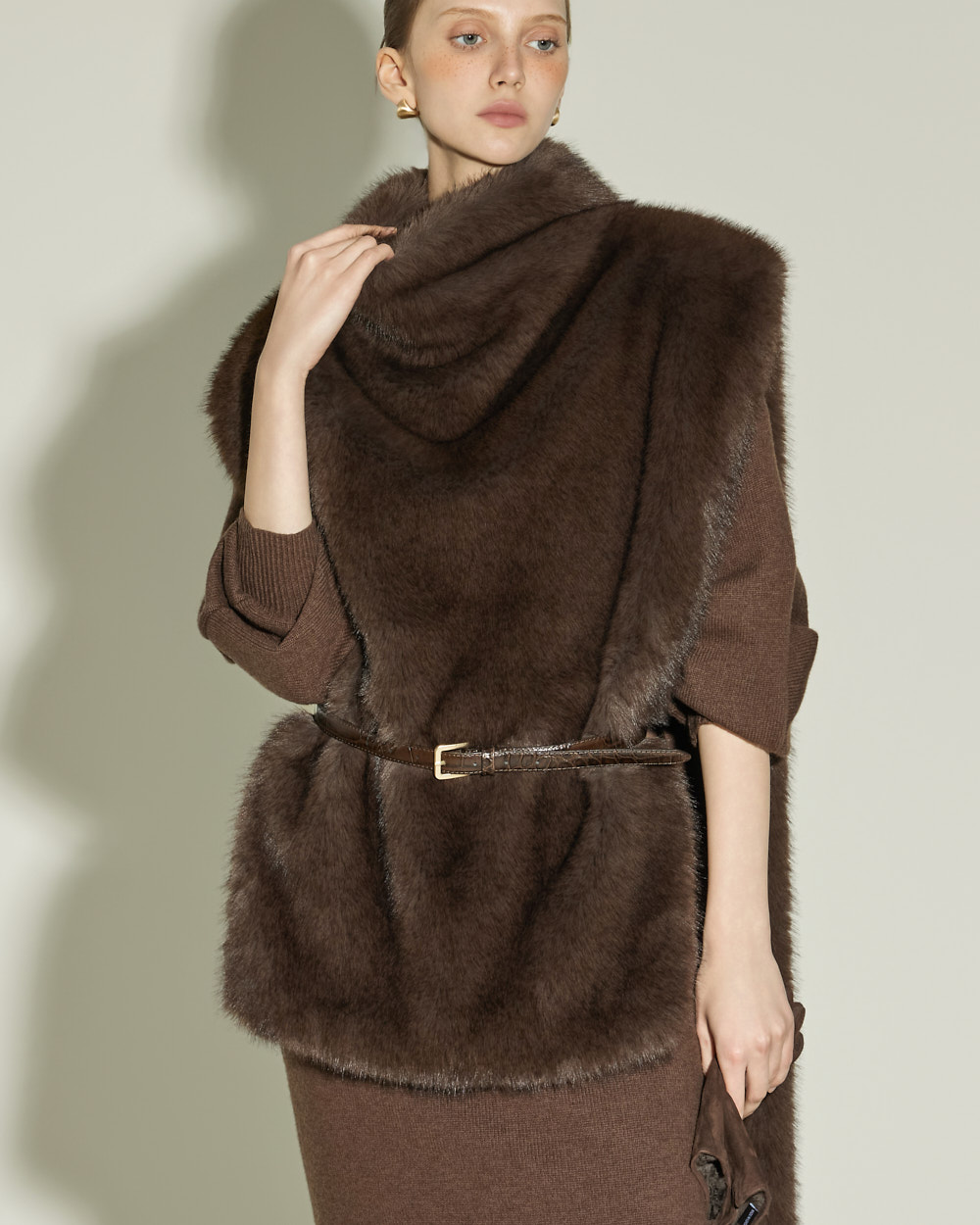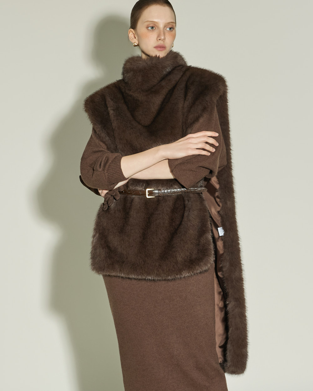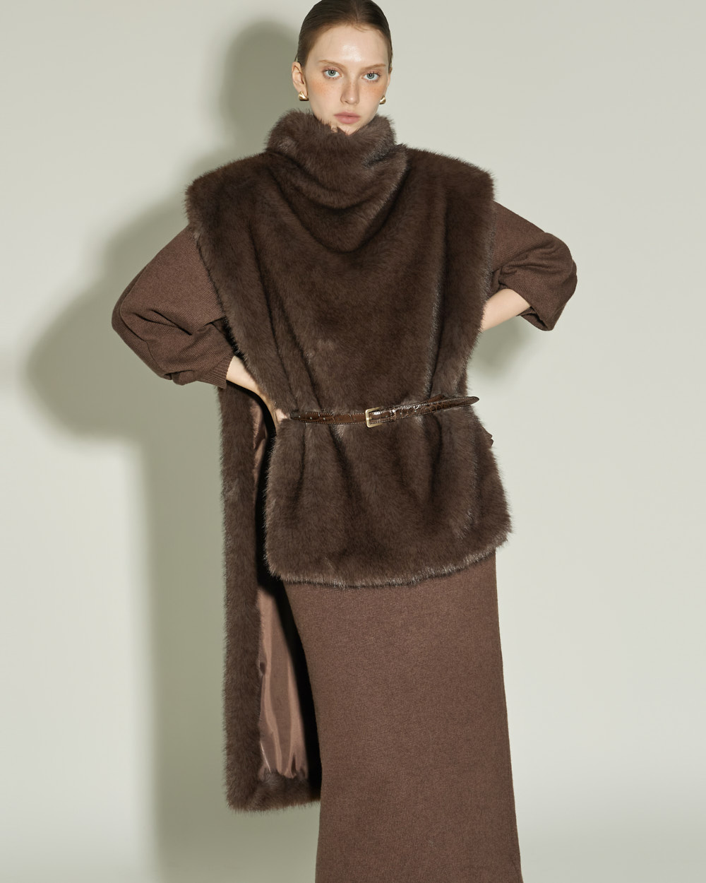 우아한 무드의 터틀넥 퍼 베스트입니다.