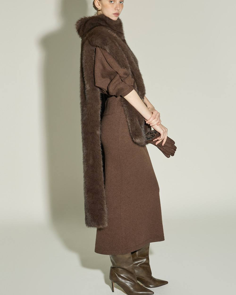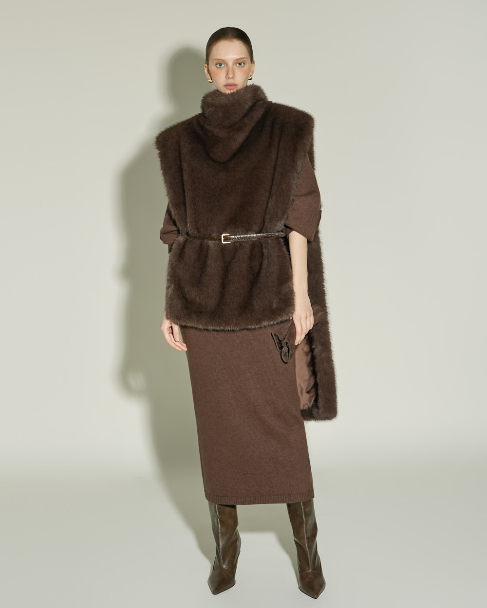 173CM 모델 ONE 사이즈, DARK BROWN 컬러 착용하였습니다.