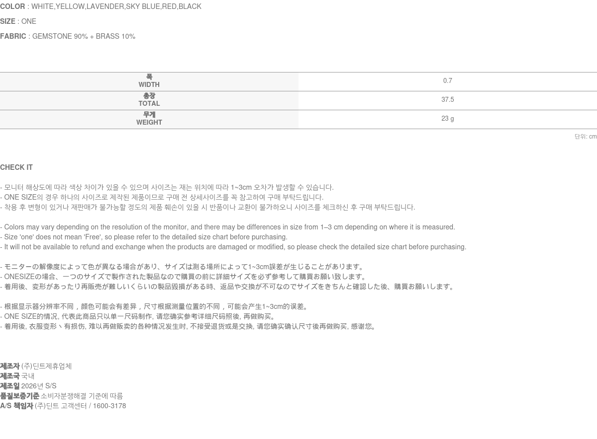 • 액세서리 및 잡화는 장시간 보관 및 착용 시 변색이나 변형이 될 수 있습니다.