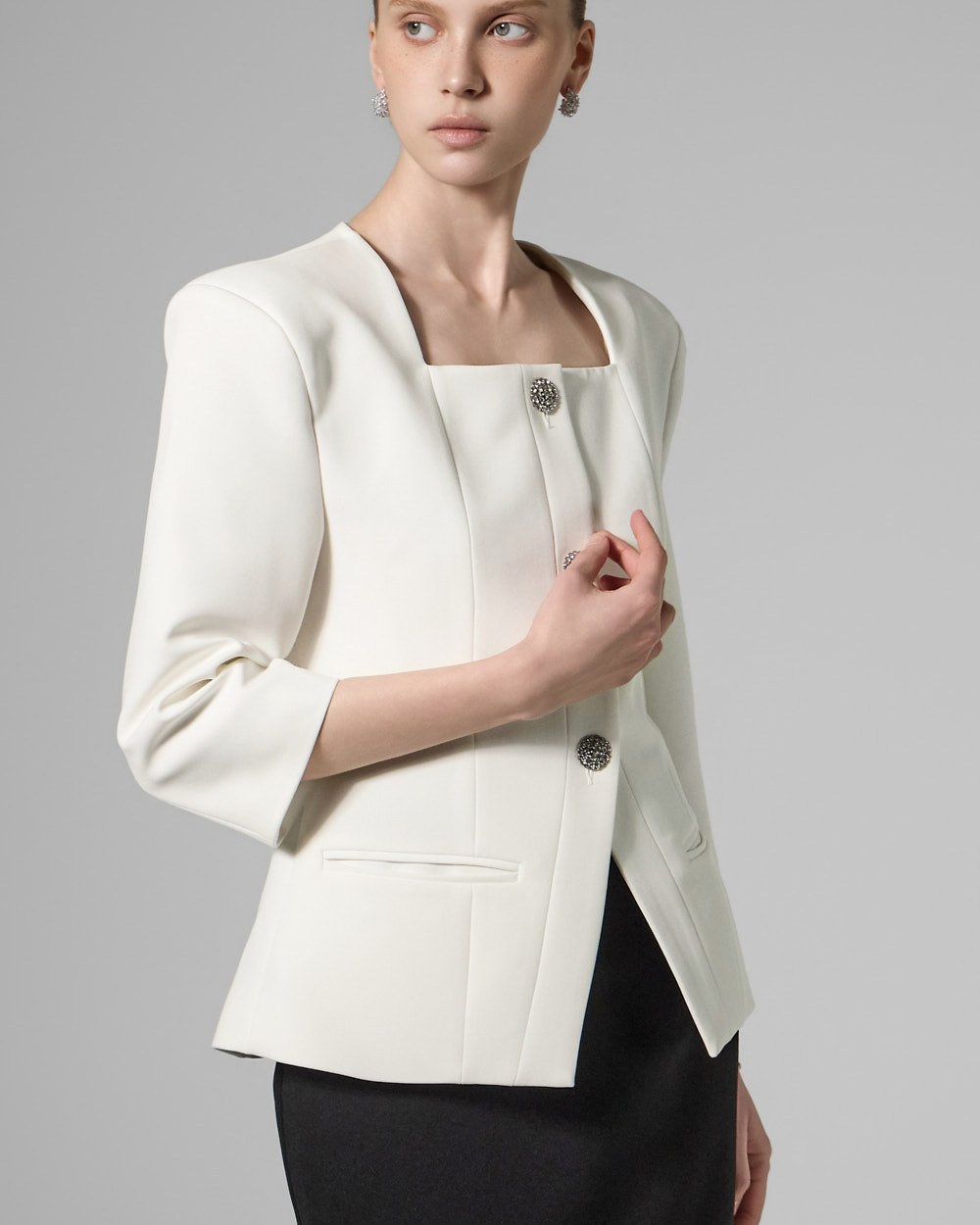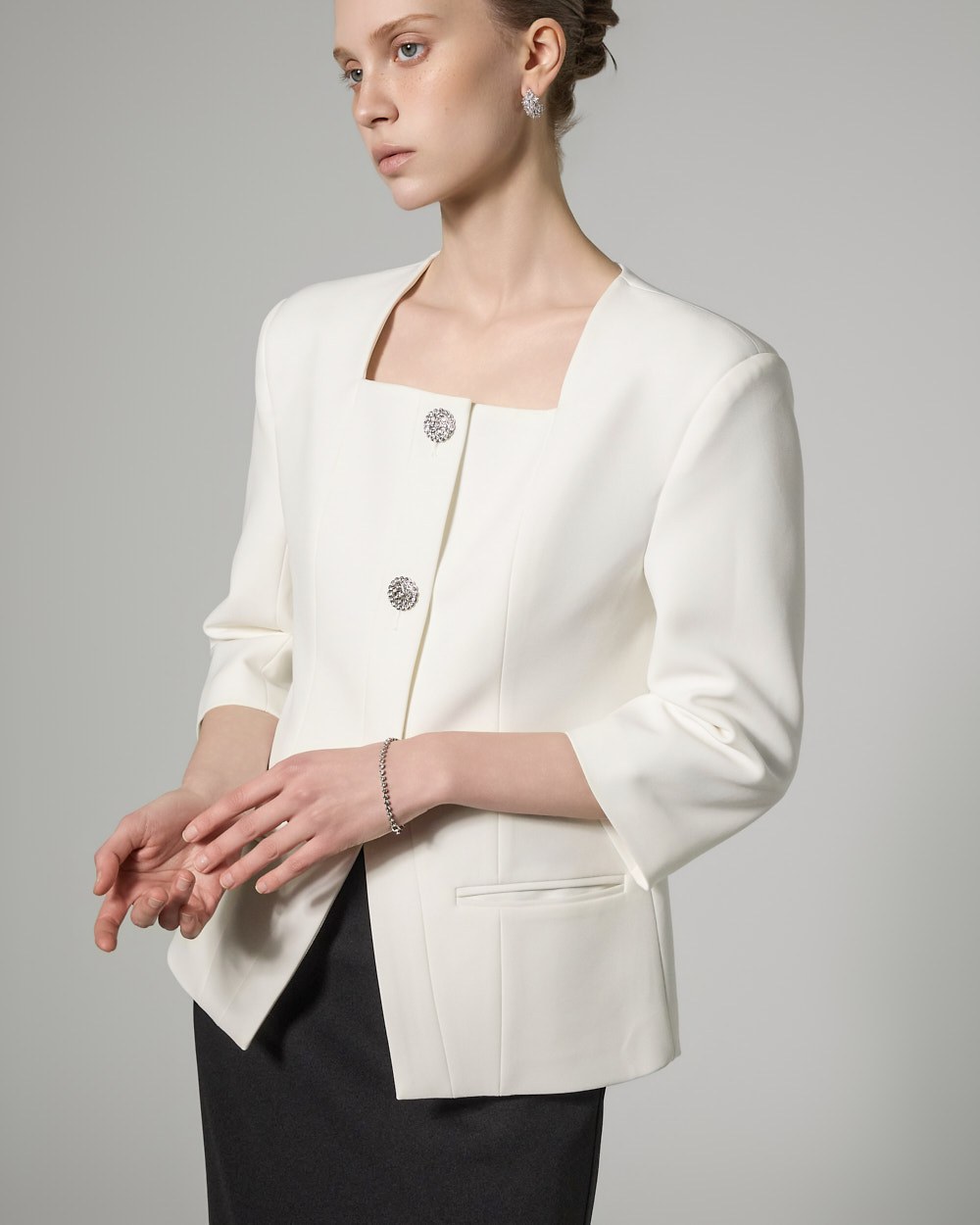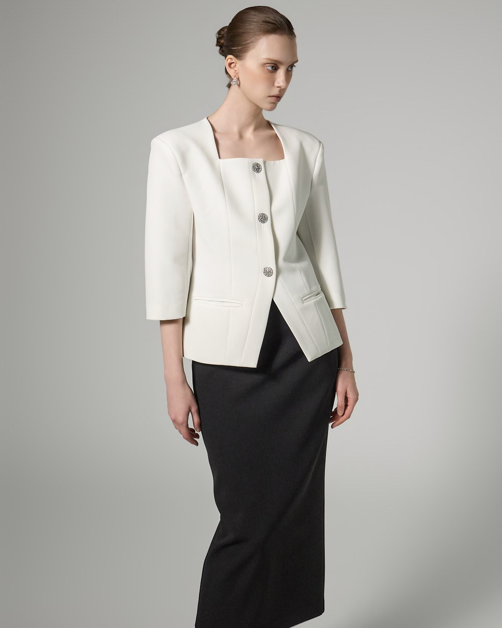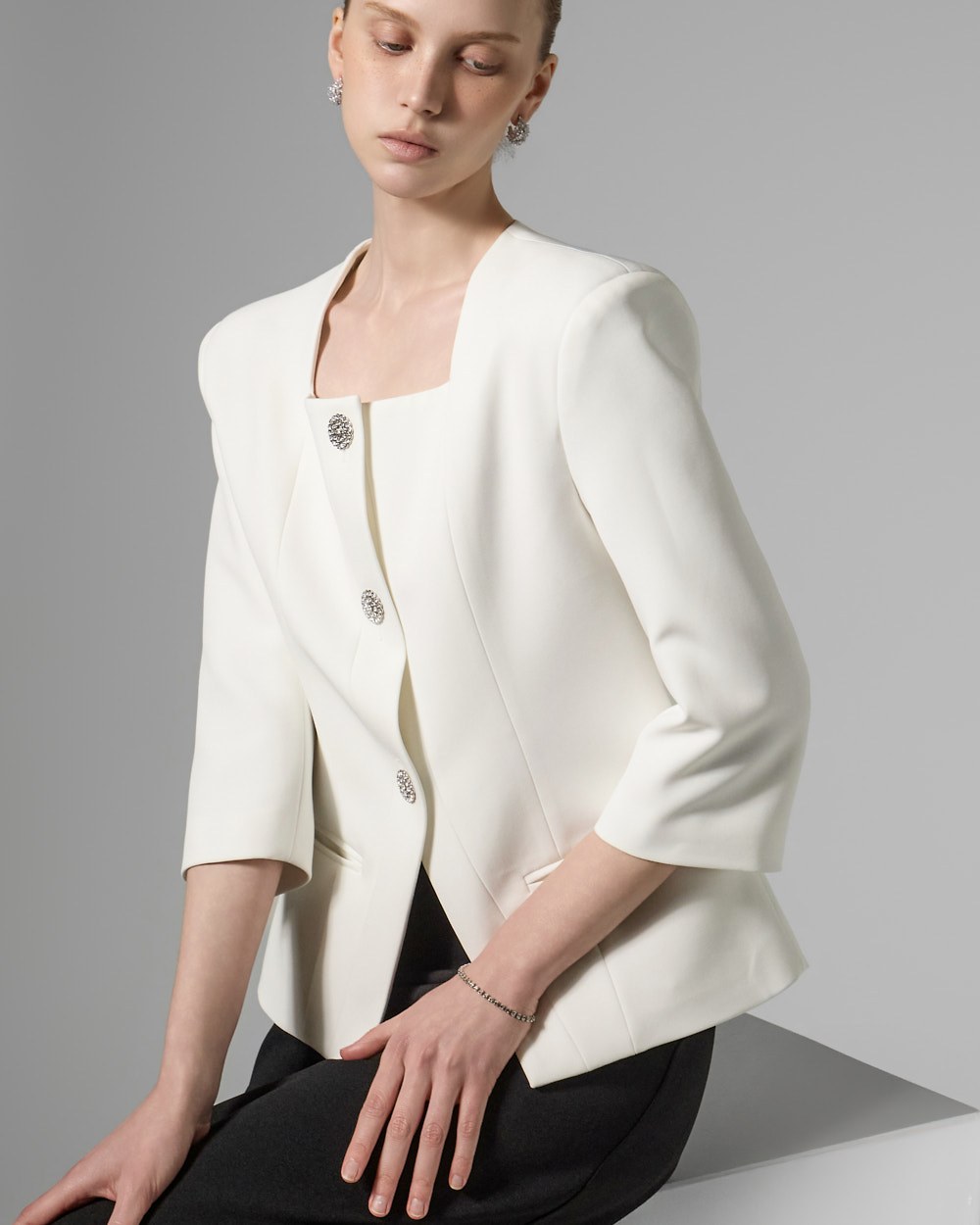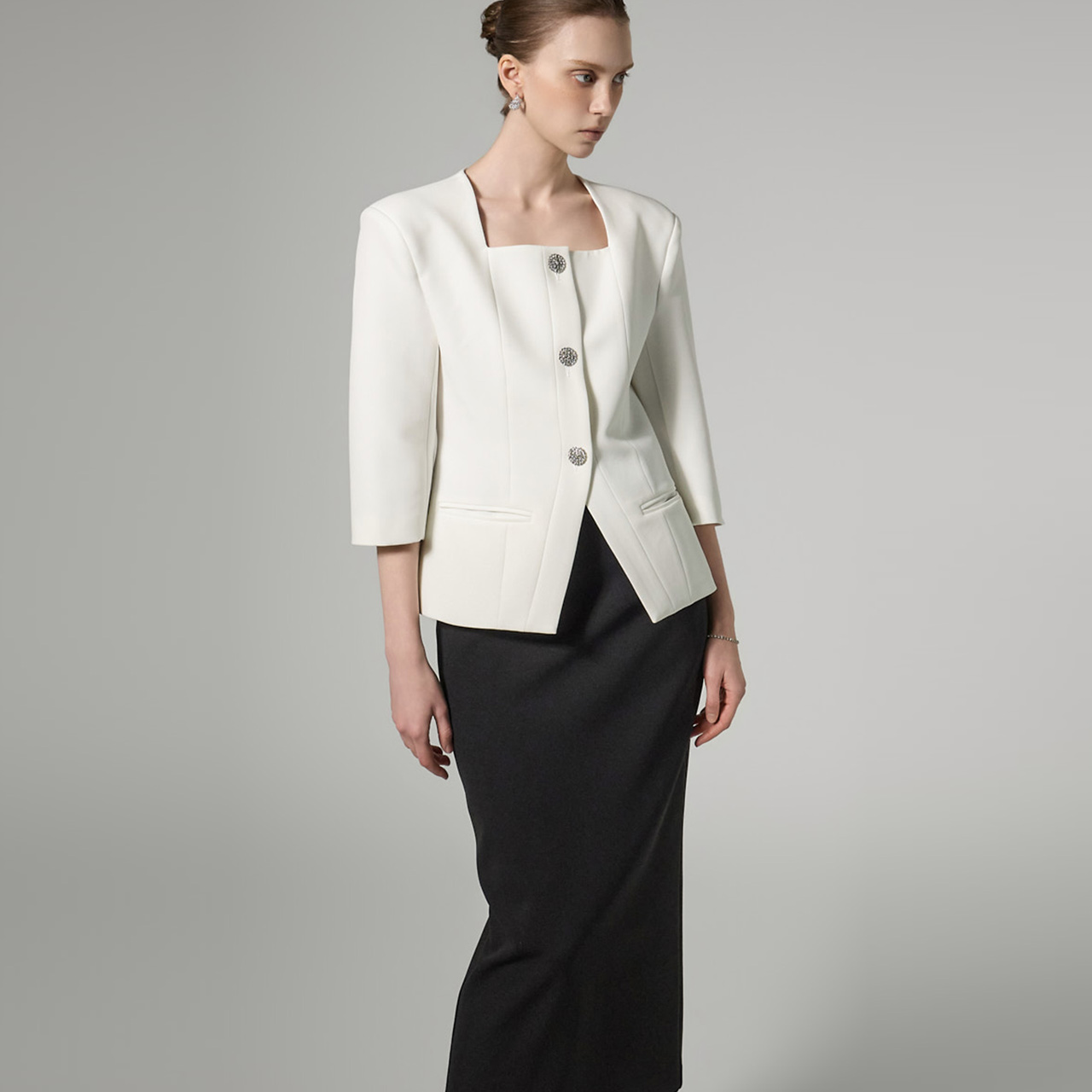 전면 큐빅 버튼 여밈이 고급스러운 포인트가 되어주며,