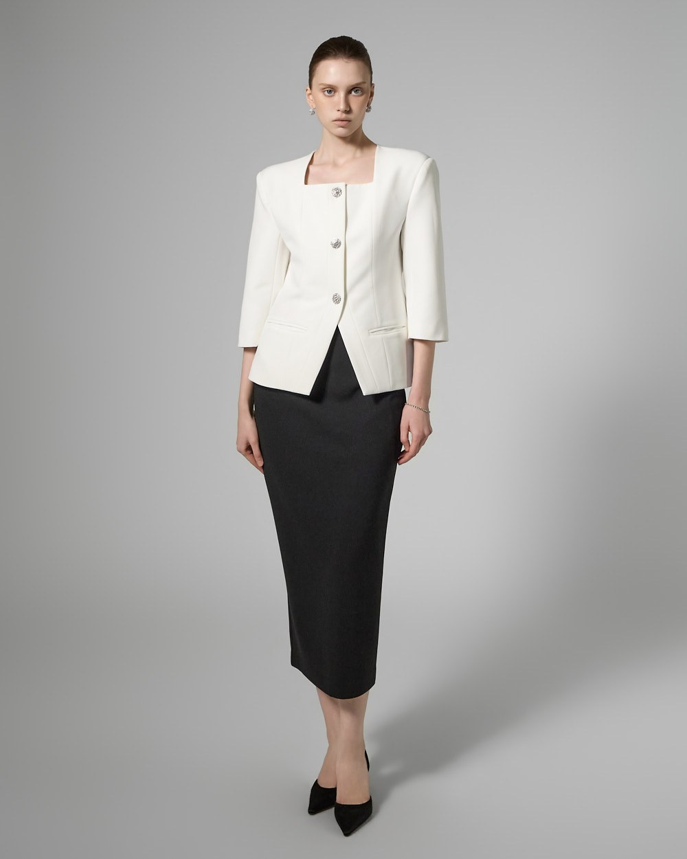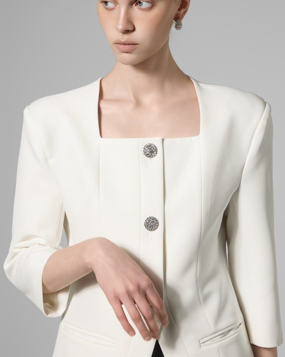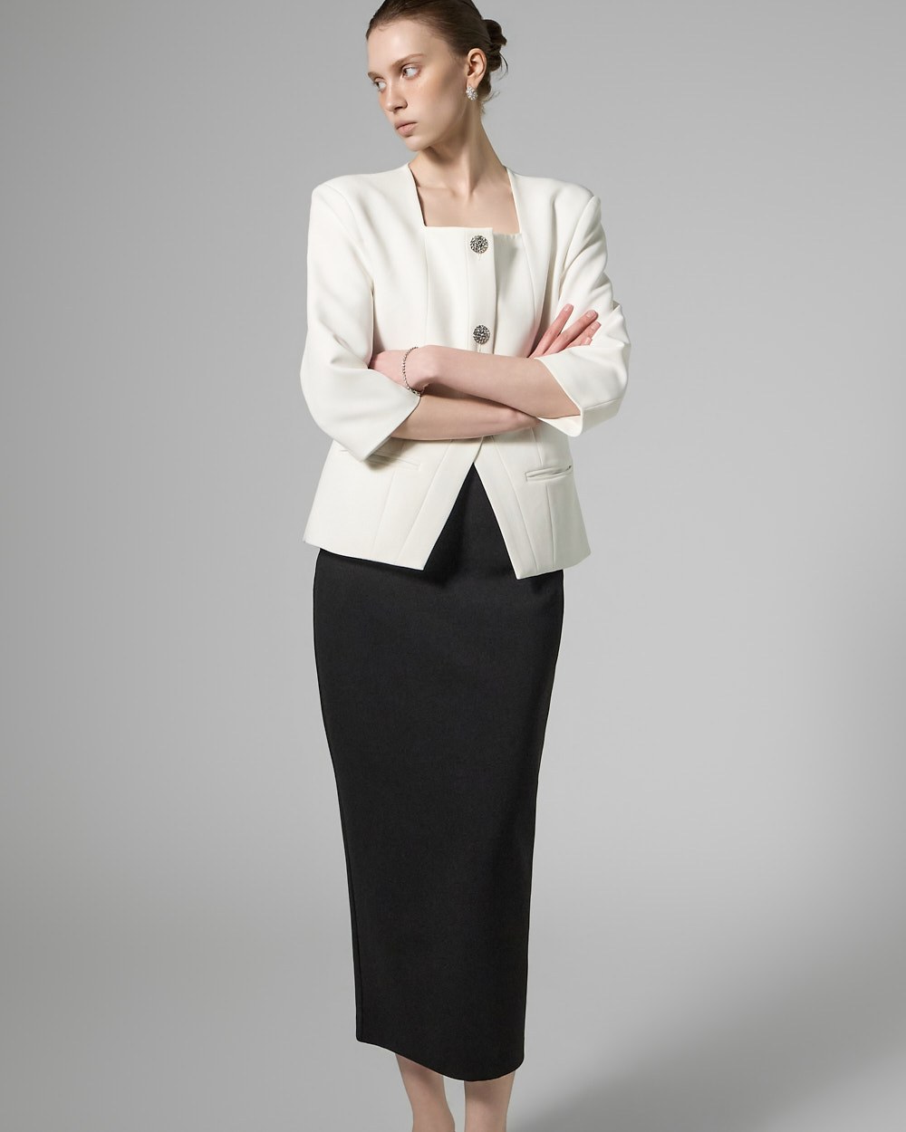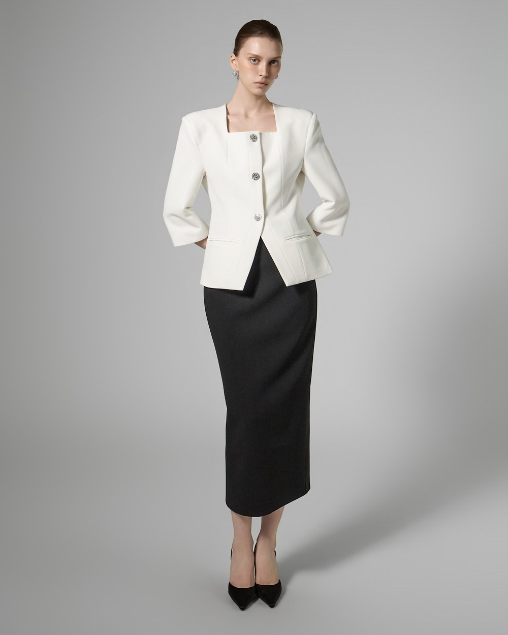 전면 큐빅 버튼 여밈이 고급스러운 포인트가 되어주며,