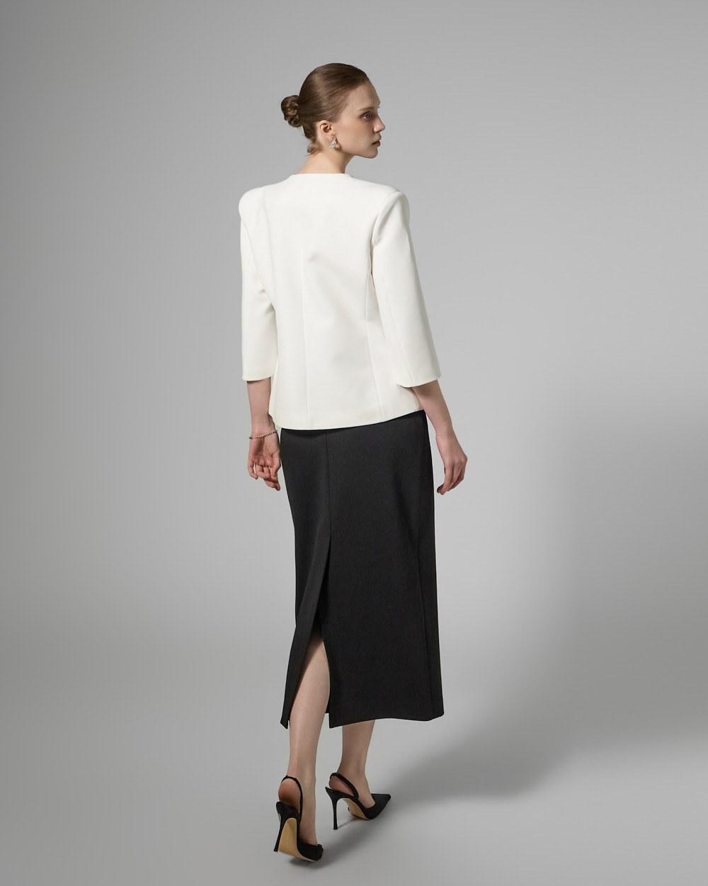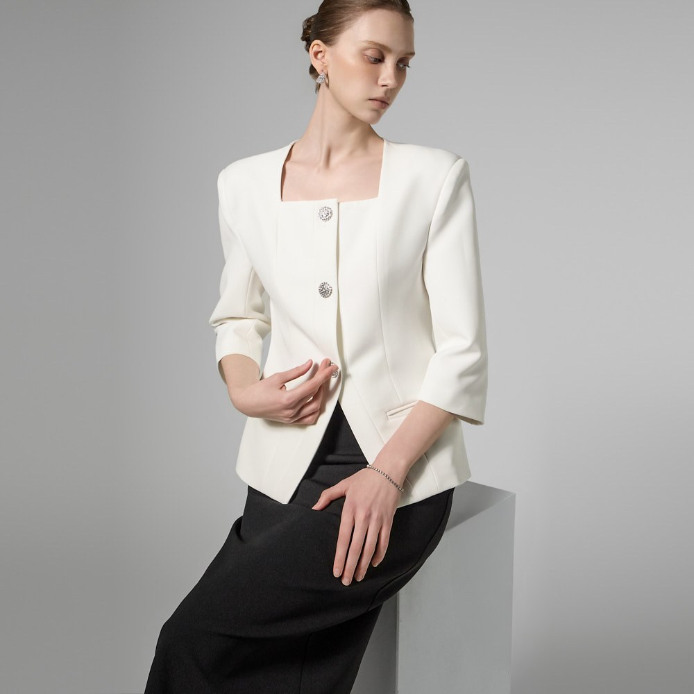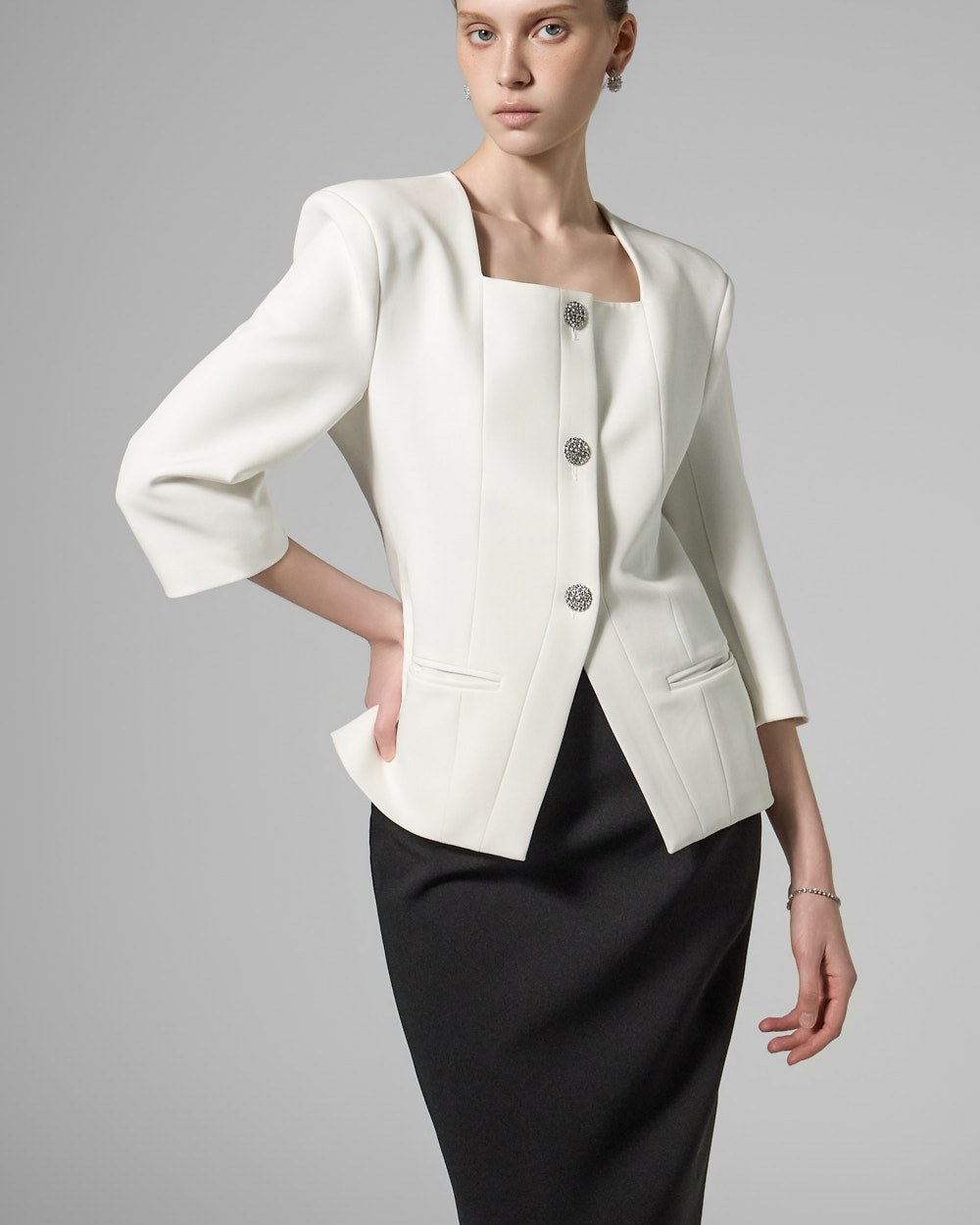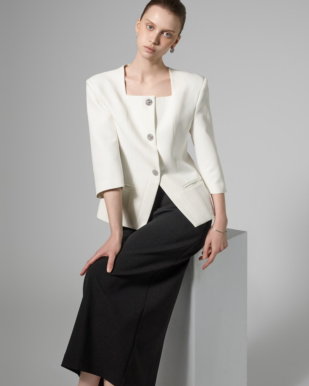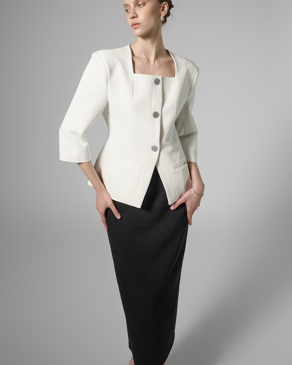 전면 큐빅 버튼 여밈이 고급스러운 포인트가 되어주며,