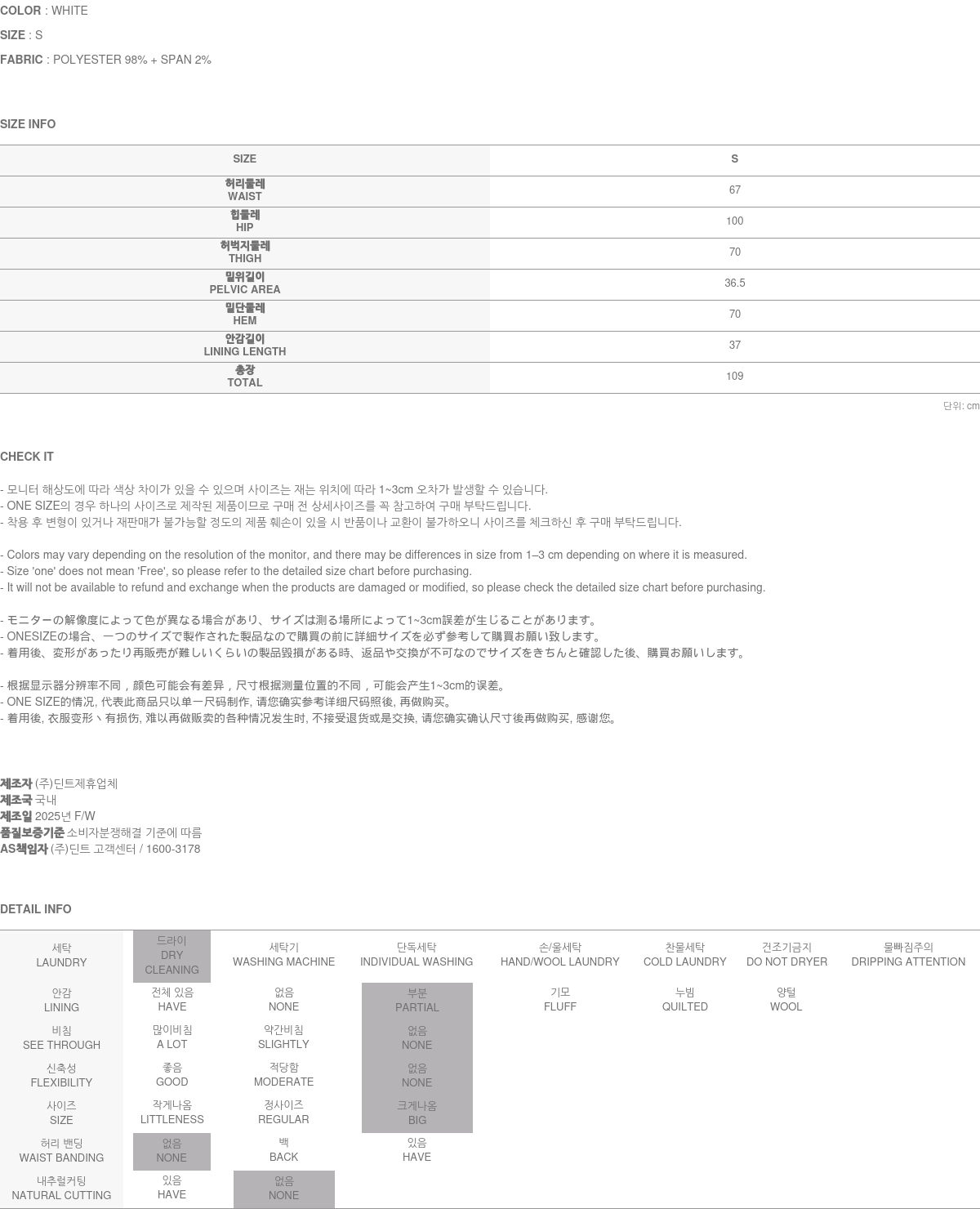 정확한 사이즈는 반드시 구매 전 상세 사이즈를 확인해 주시기 바랍니다.
