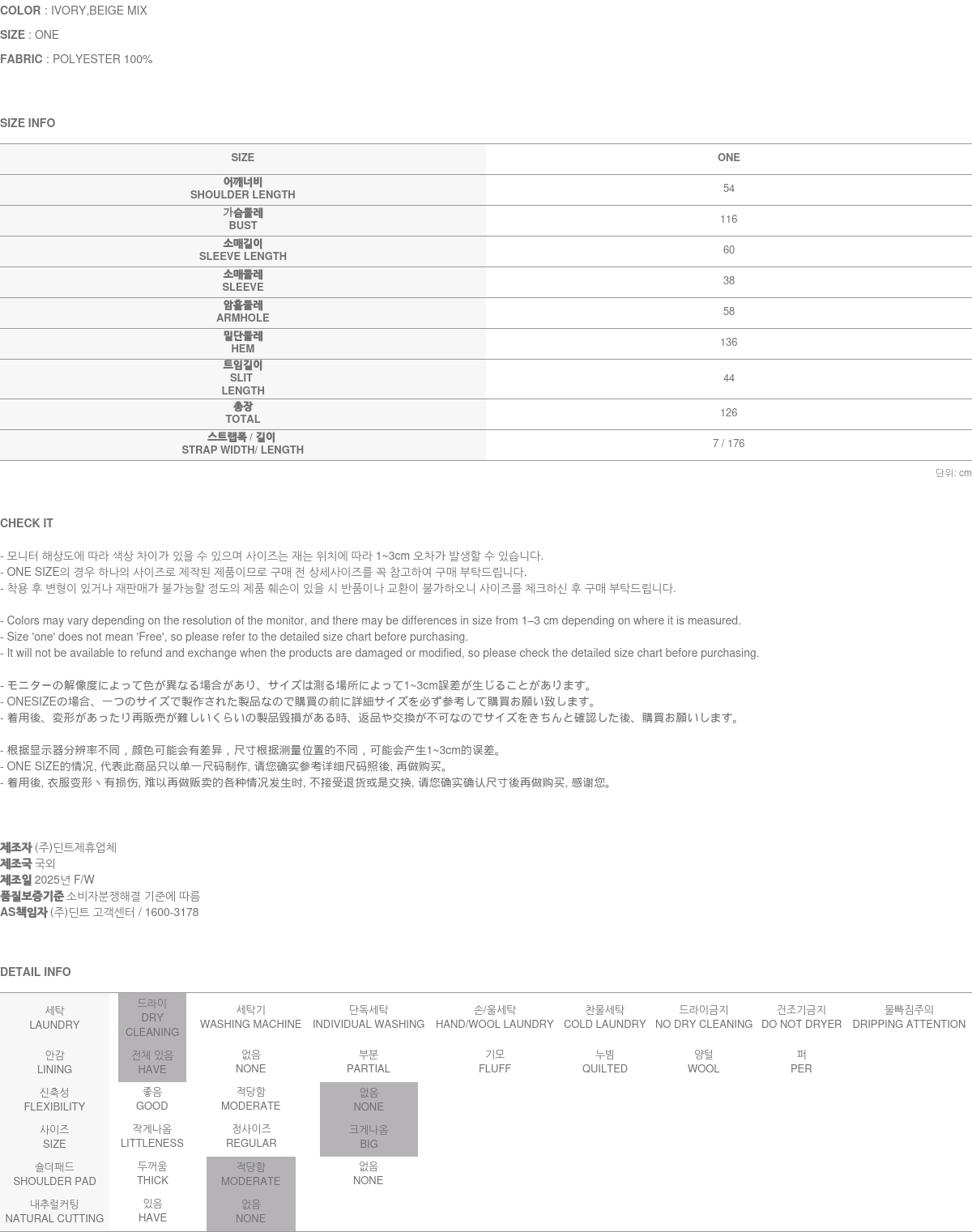 173CM 모델 ONE 사이즈, BEIGE MIX 컬러 착용하였습니다.