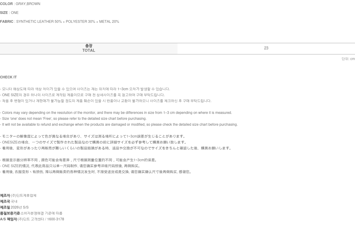• 액세서리 및 잡화는 장시간 보관 및 착용 시 변색이나 변형이 될 수 있습니다.