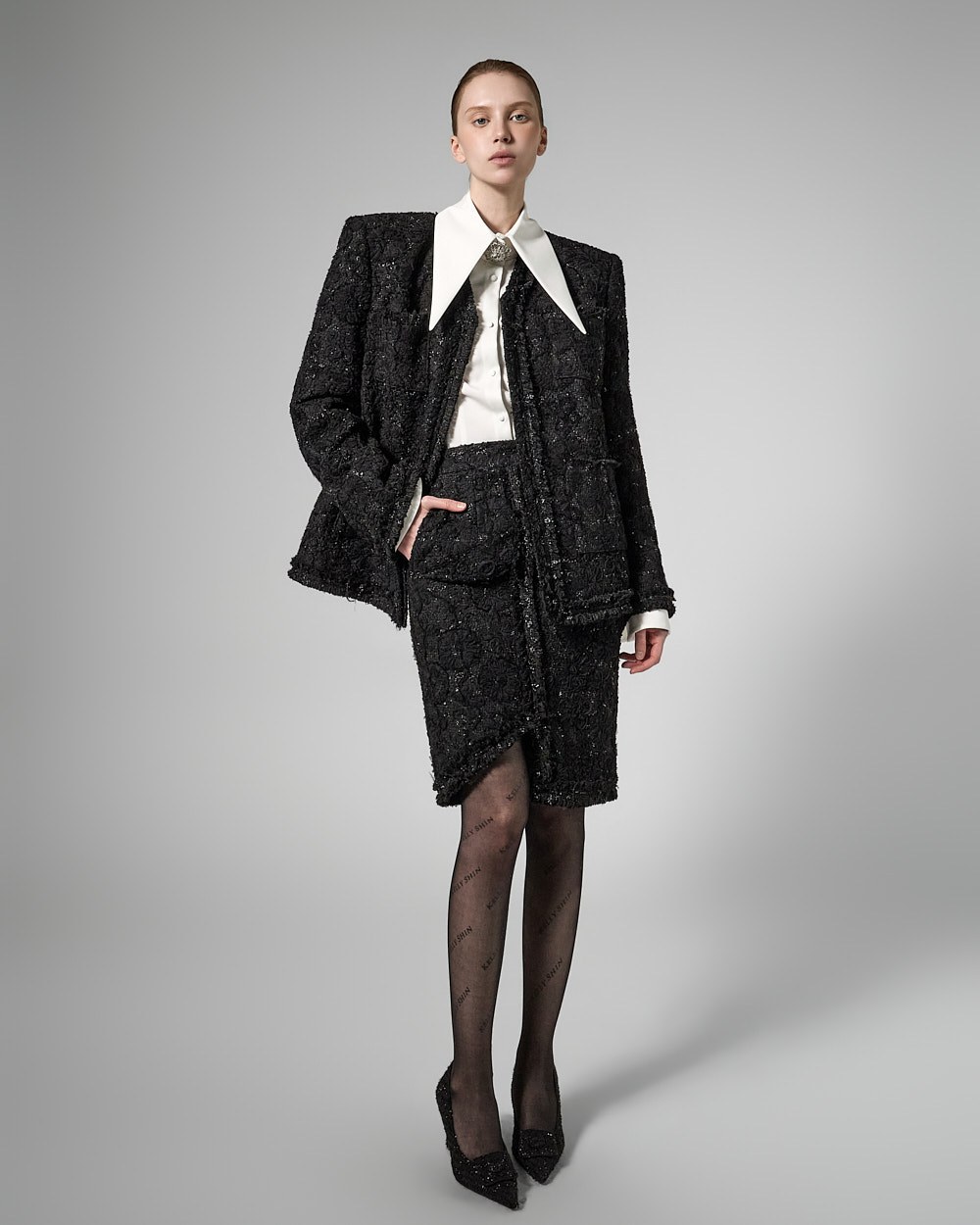 페미닌한 무드의 트위드 셋업입니다.