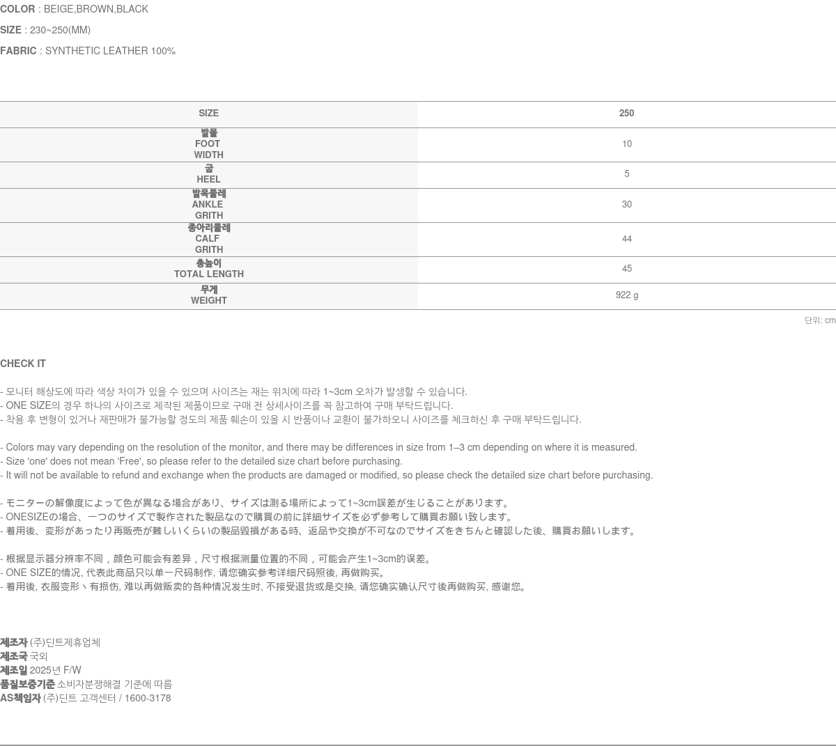정확한 사이즈는 반드시 구매 전 상세 사이즈를 확인해 주시기 바랍니다.