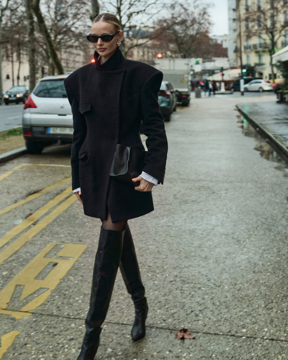 적당한 숄더 패드와 허리를 잡아주는 슬림핏 디자인으로