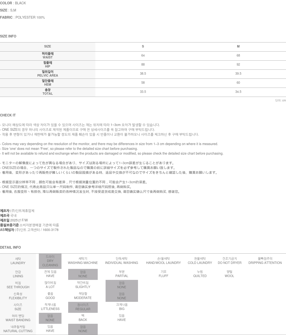 173CM 모델 S 사이즈, BLACK 컬러 착용하였습니다.