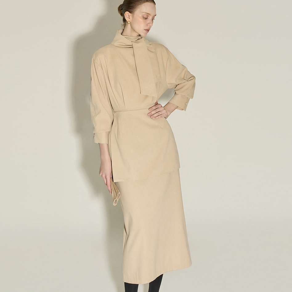 반 하이넥 디자인에 네크라인 스트랩 연출이 가능해