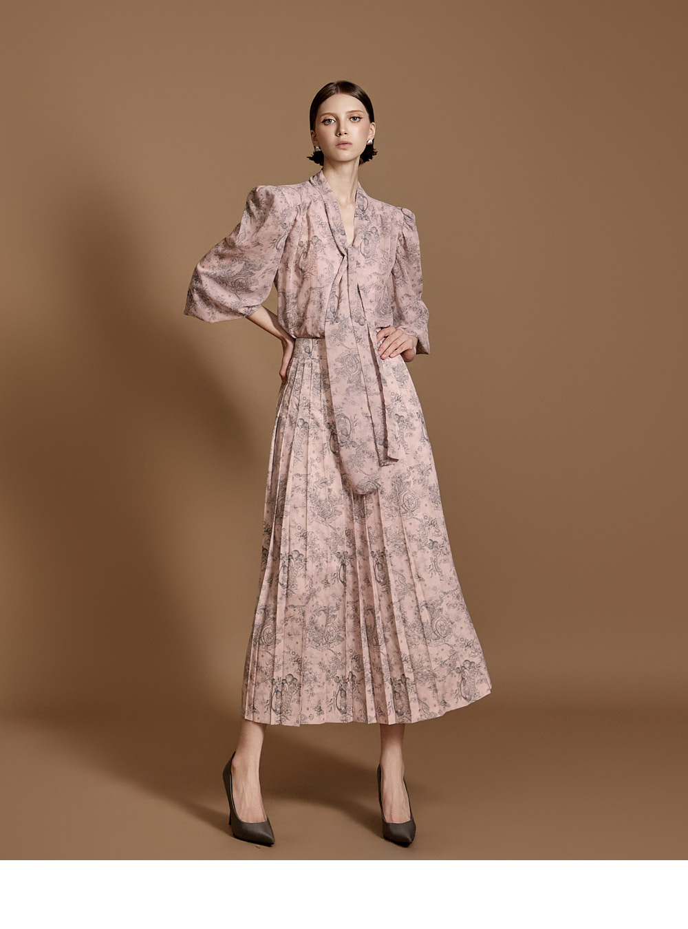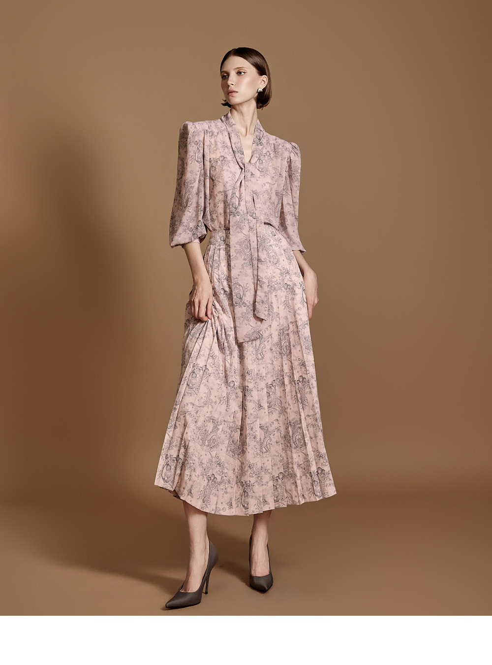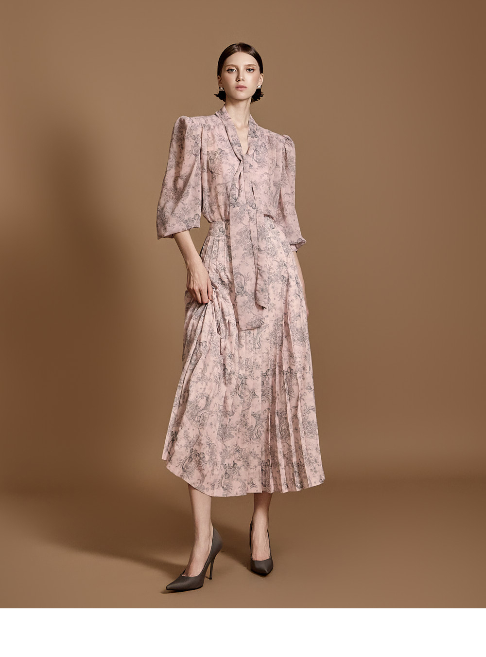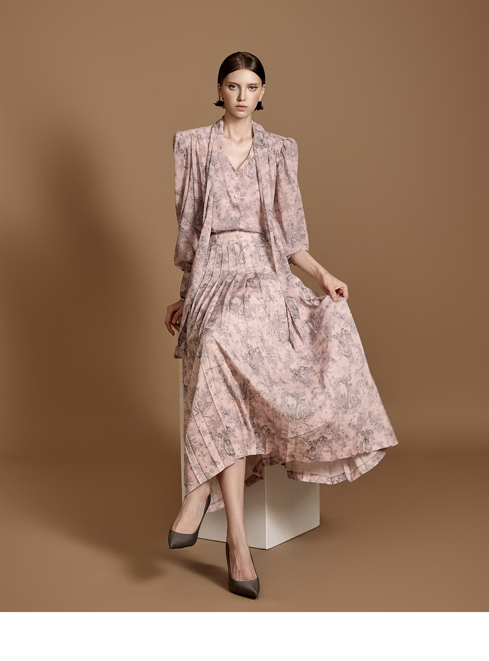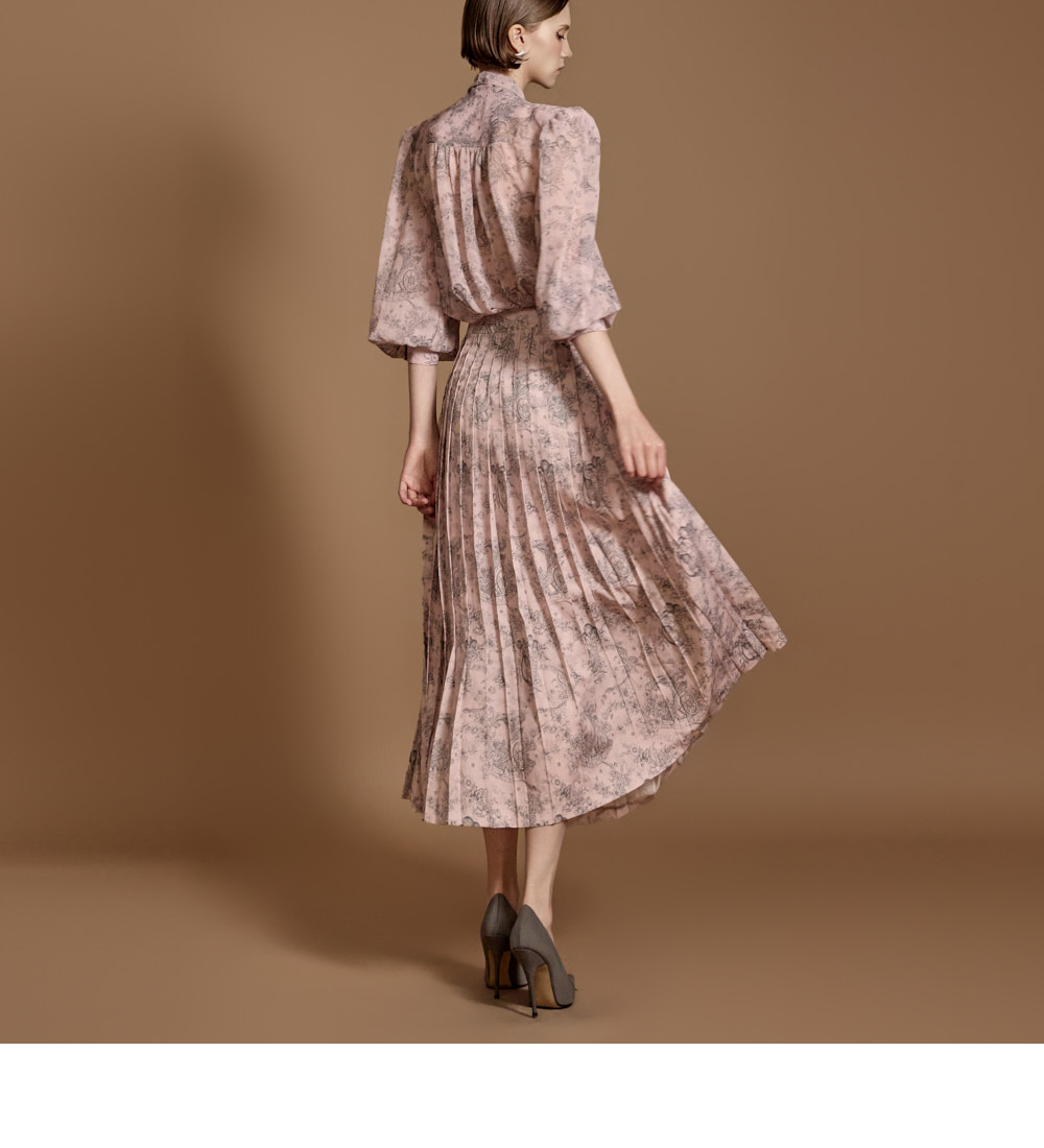 전체 플리츠 디자인으로 움직이는 실루엣이