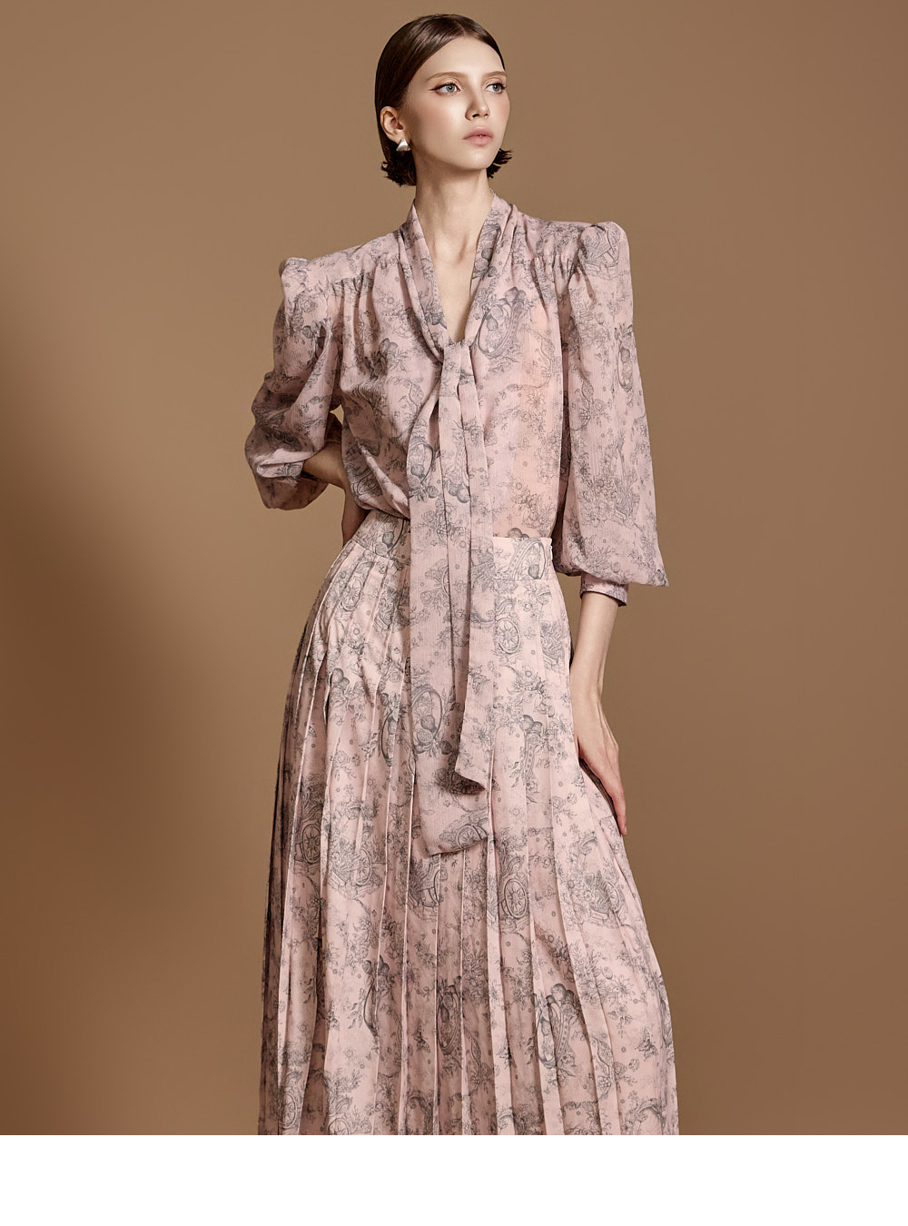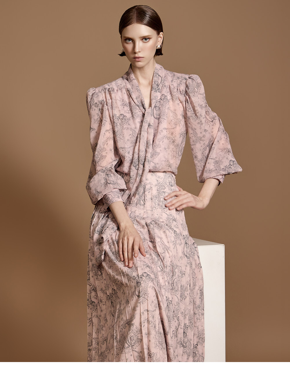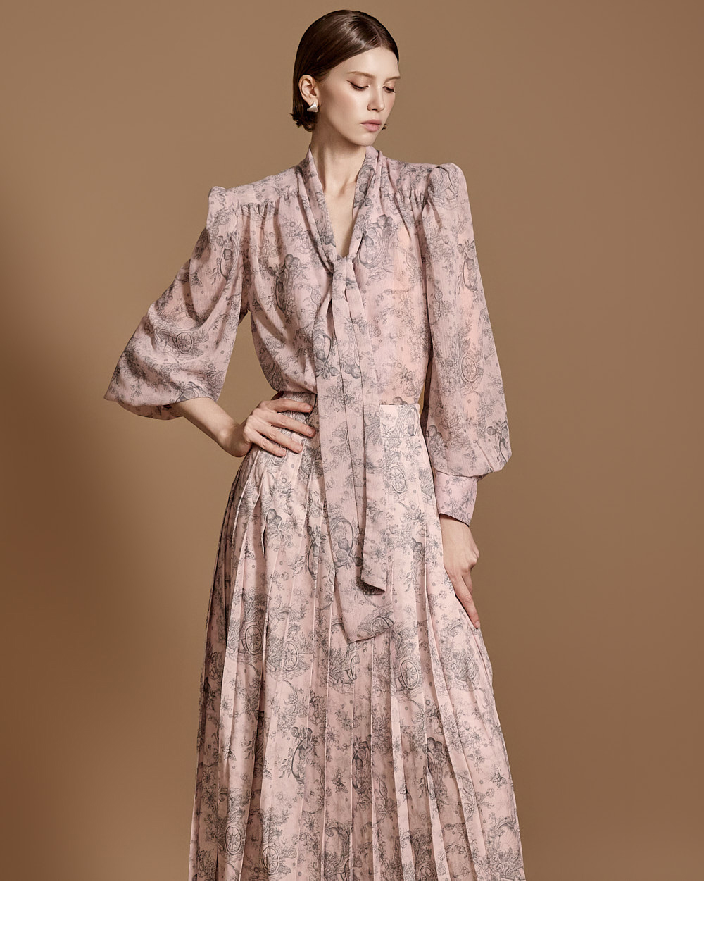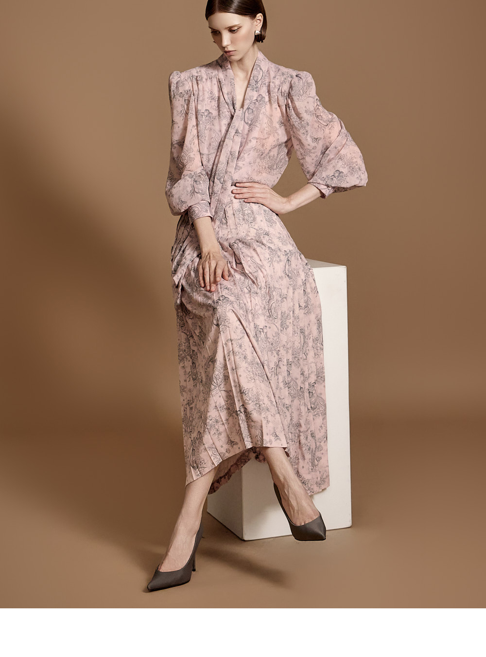전체 플리츠 디자인으로 움직이는 실루엣이