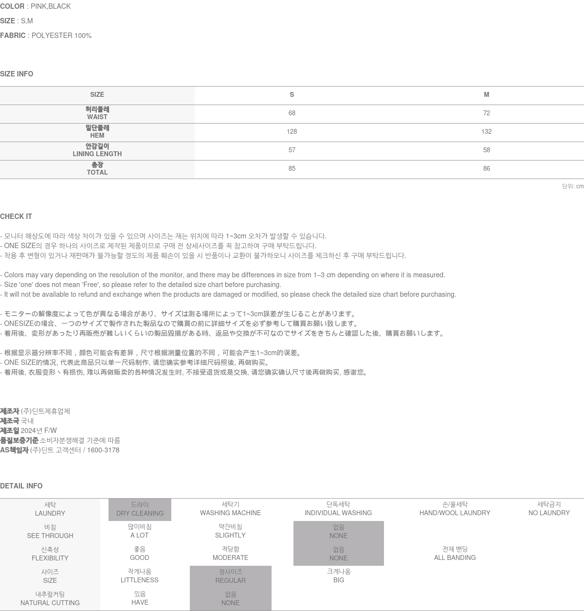174CM 모델 S 사이즈, PINK 컬러 착용하였습니다.