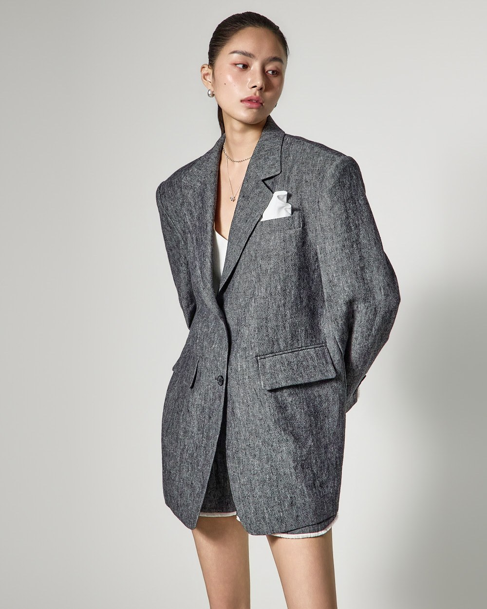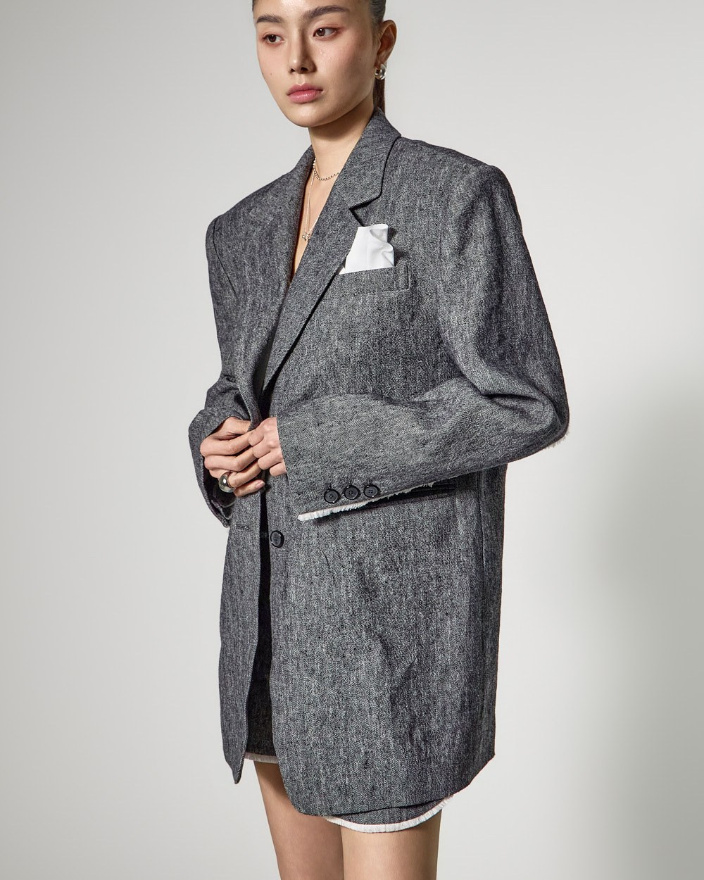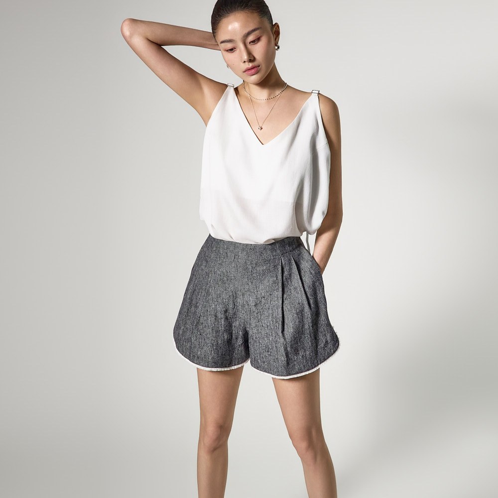 전체 린넨 텍스쳐로 제작되어 여름 시즌 이너로 활용하거나