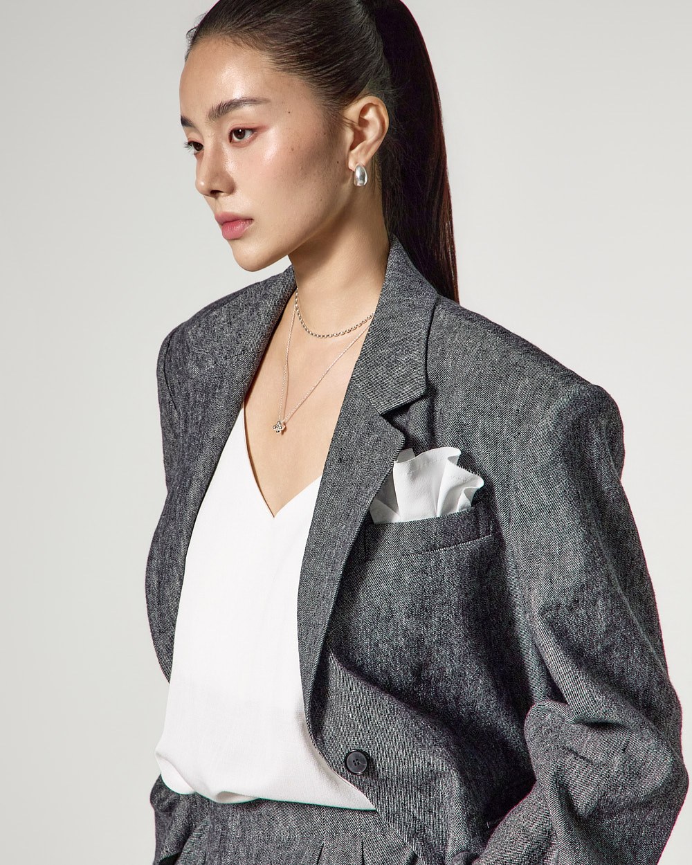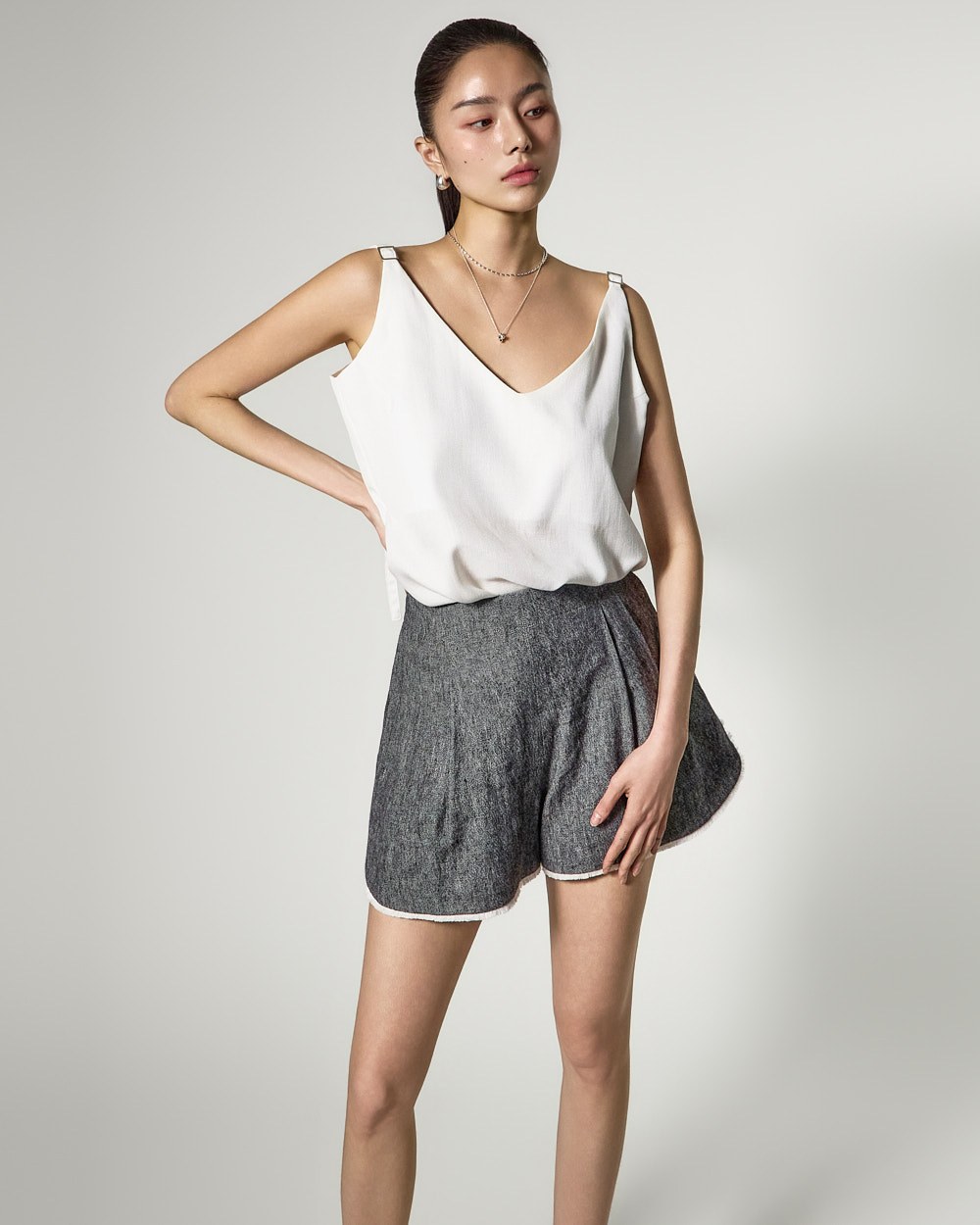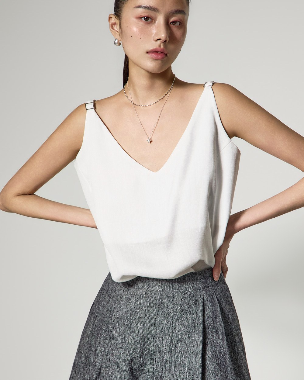 브이넥 디자인으로 얼굴 라인을 시원하게 연출해주며,
