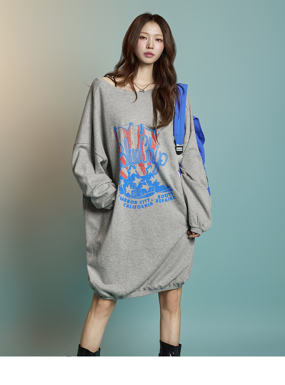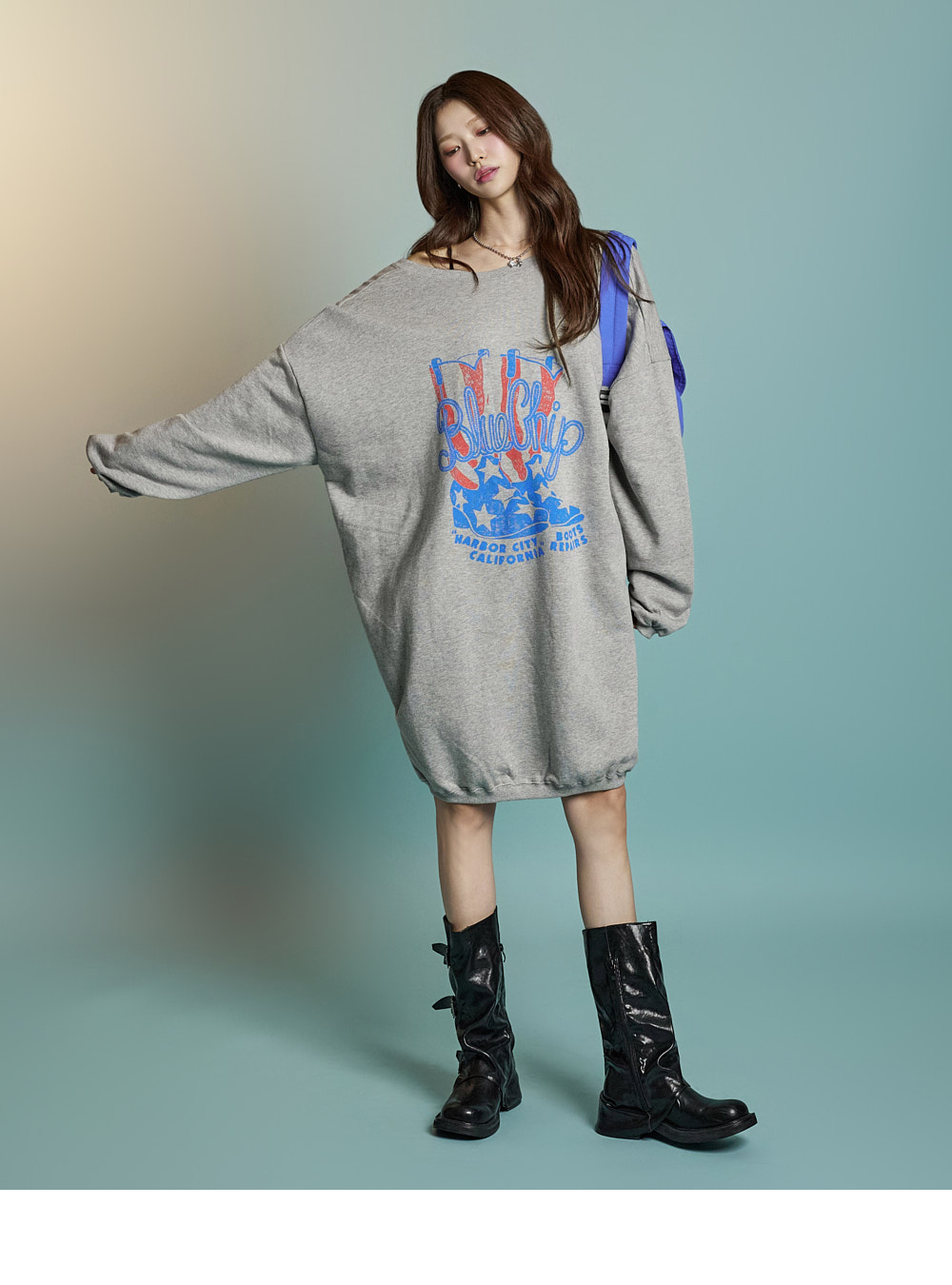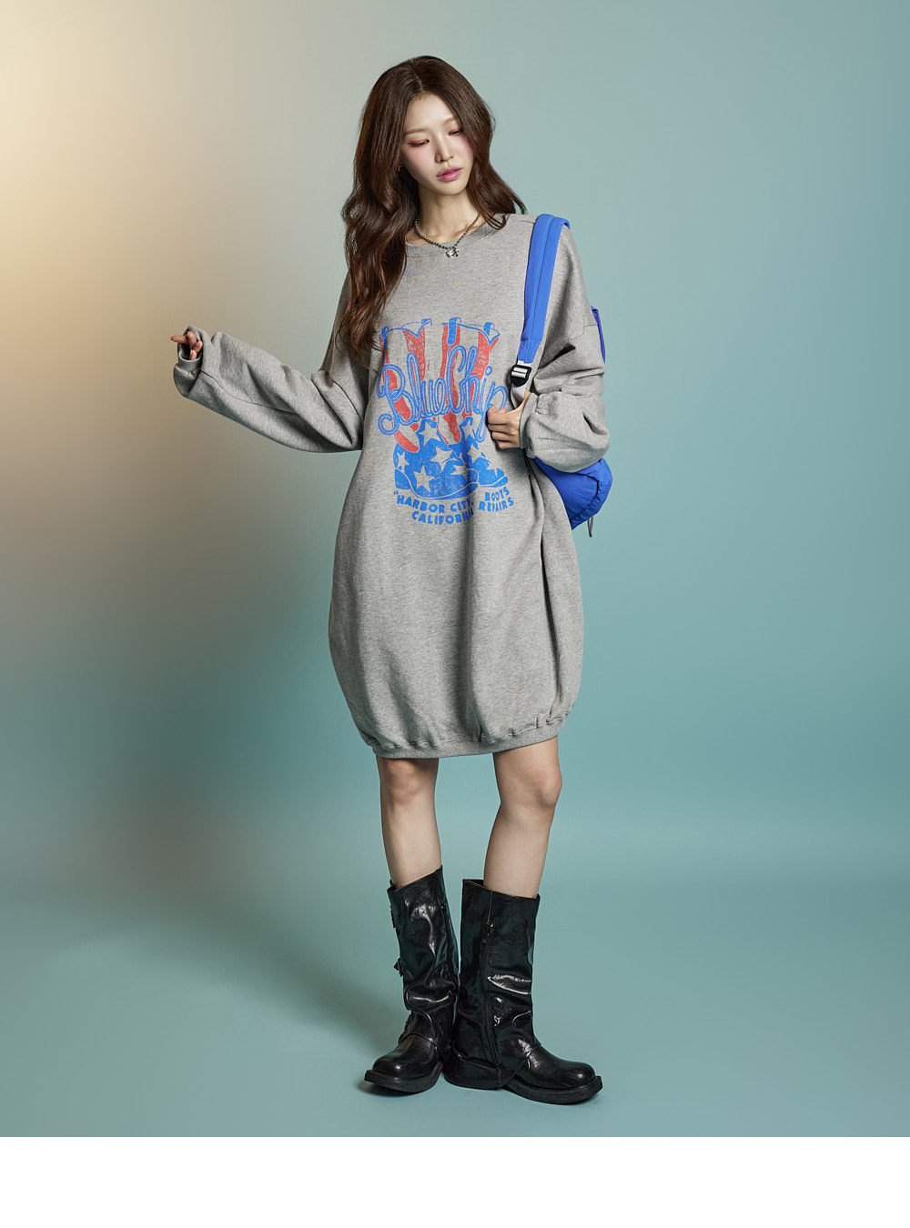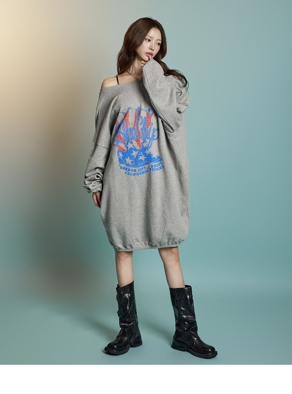 캐주얼한 무드의 맨투맨 원피스입니다.