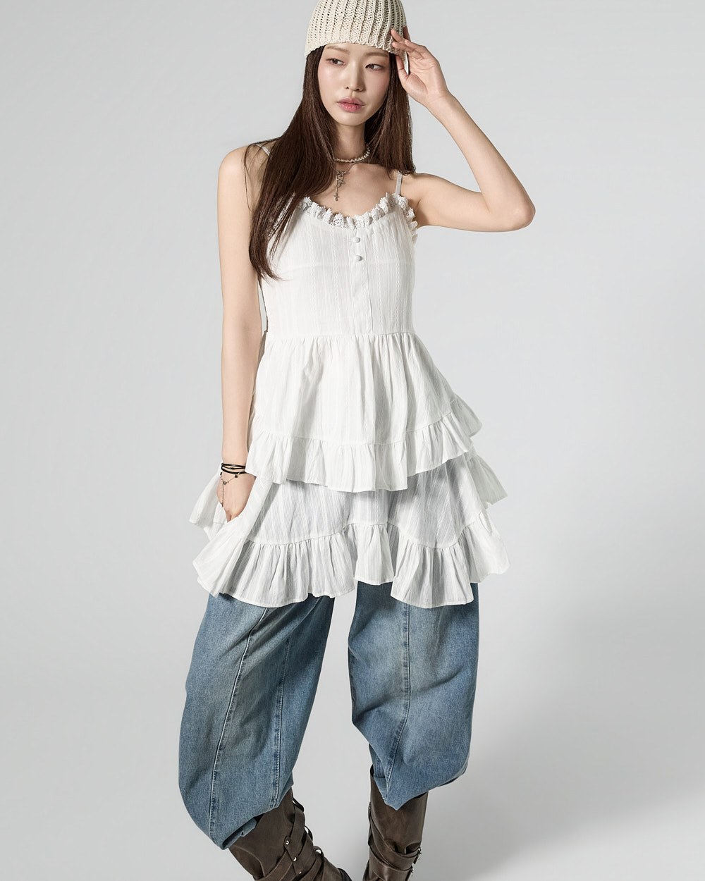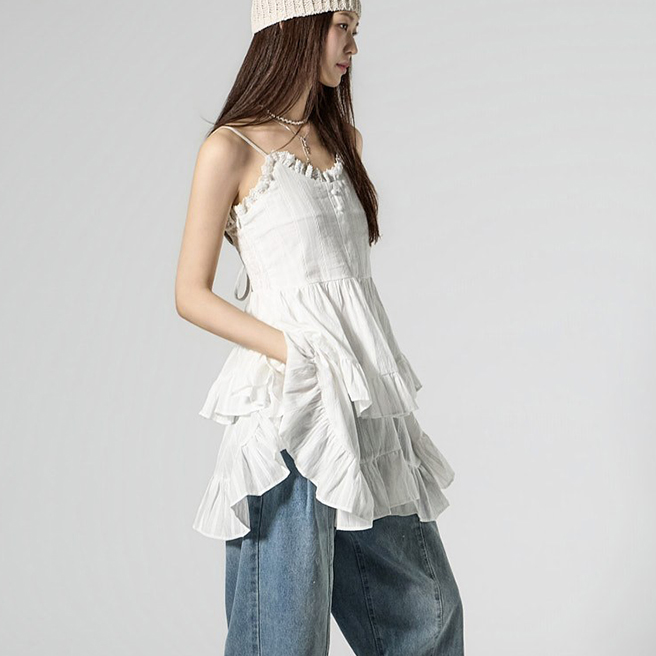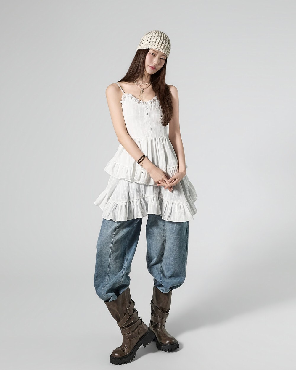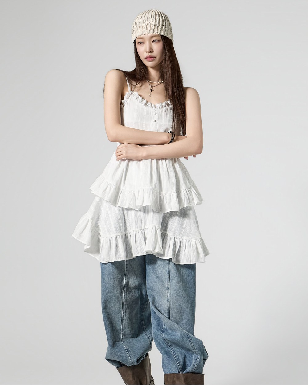 러블리한 무드의 프릴 슬리브리스 원피스입니다.