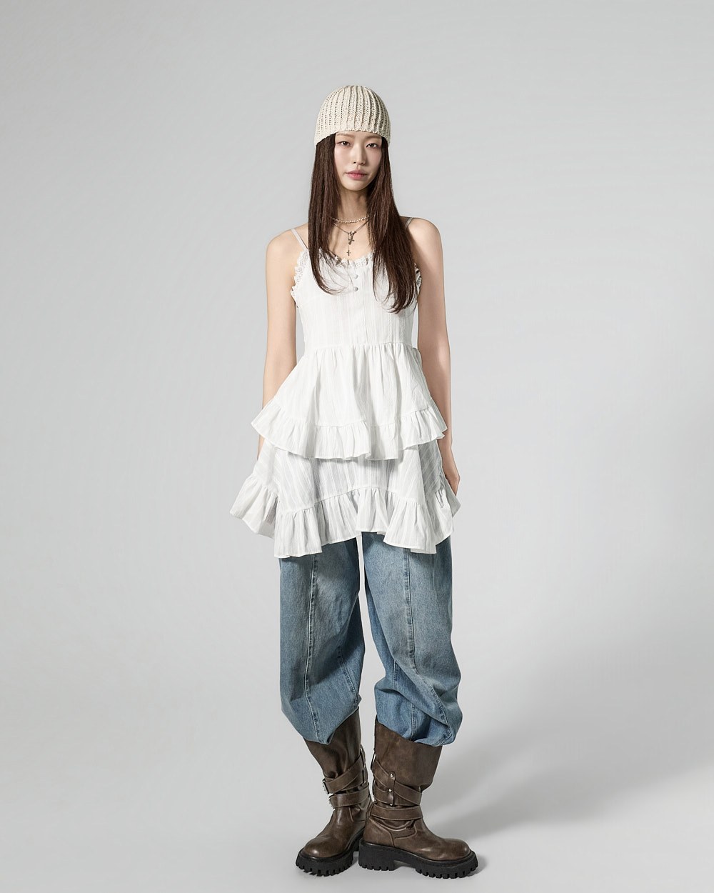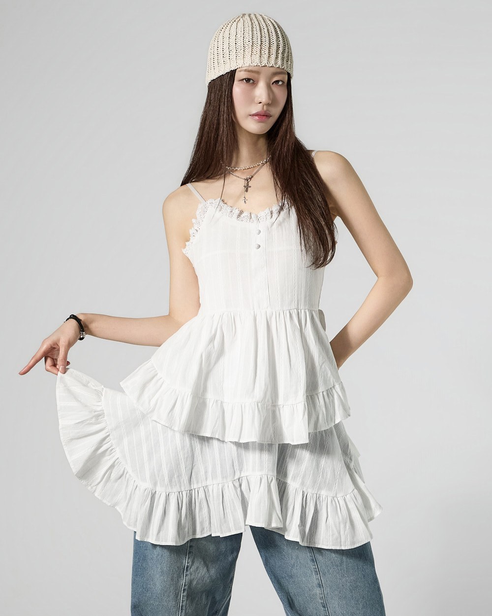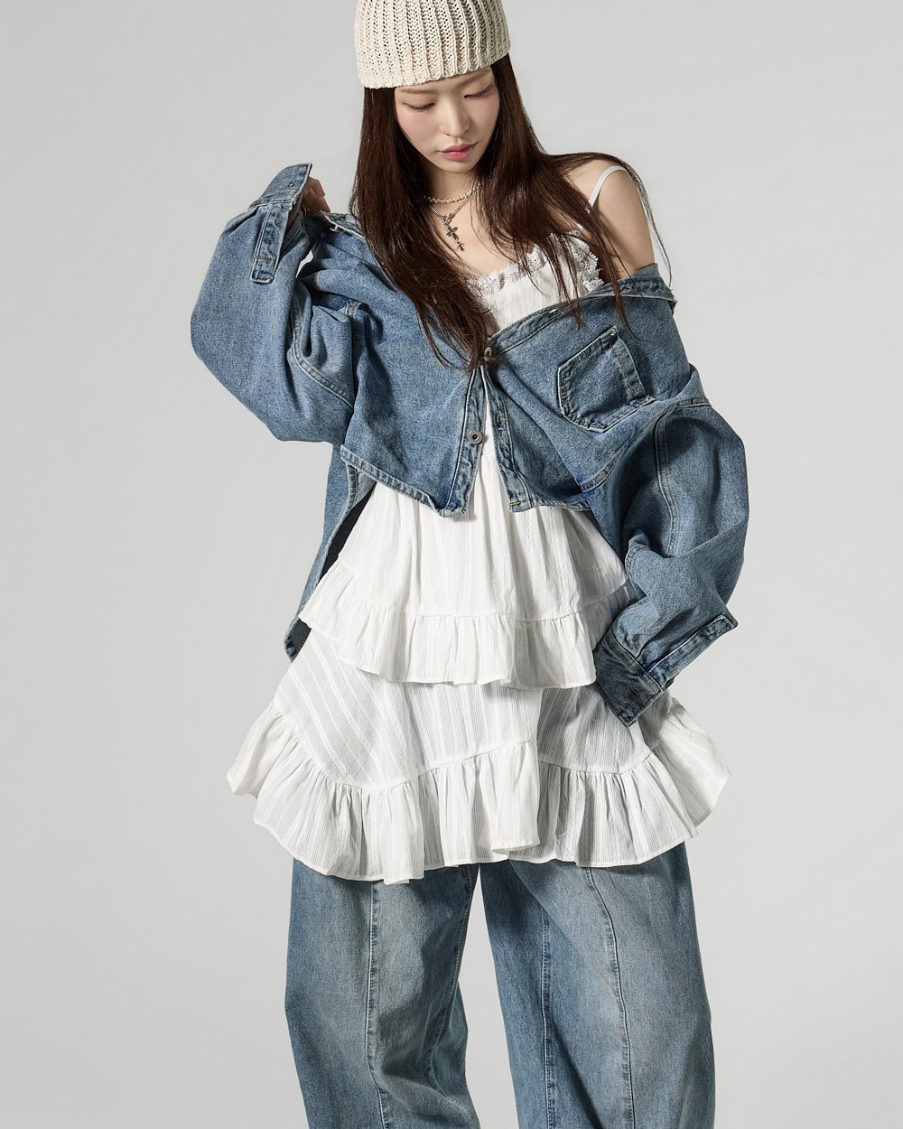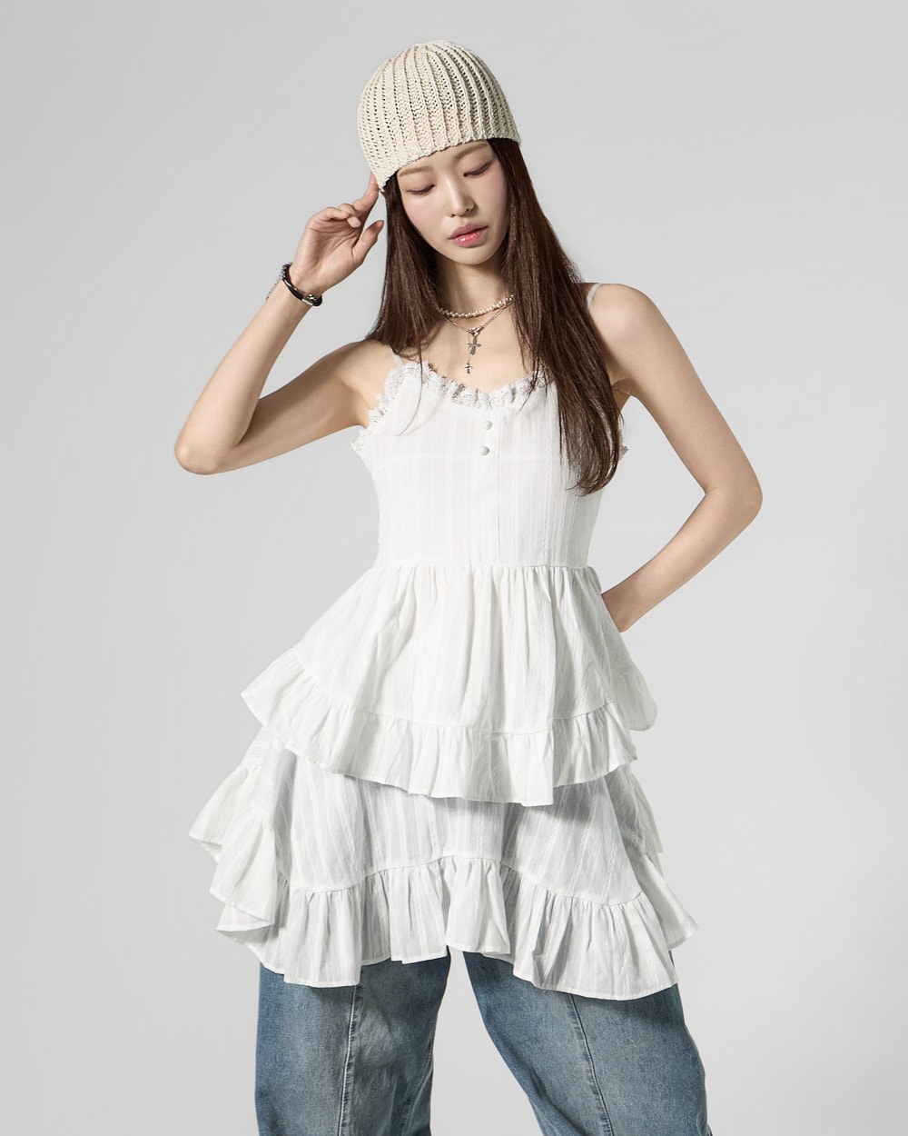 러블리한 무드의 프릴 슬리브리스 원피스입니다.