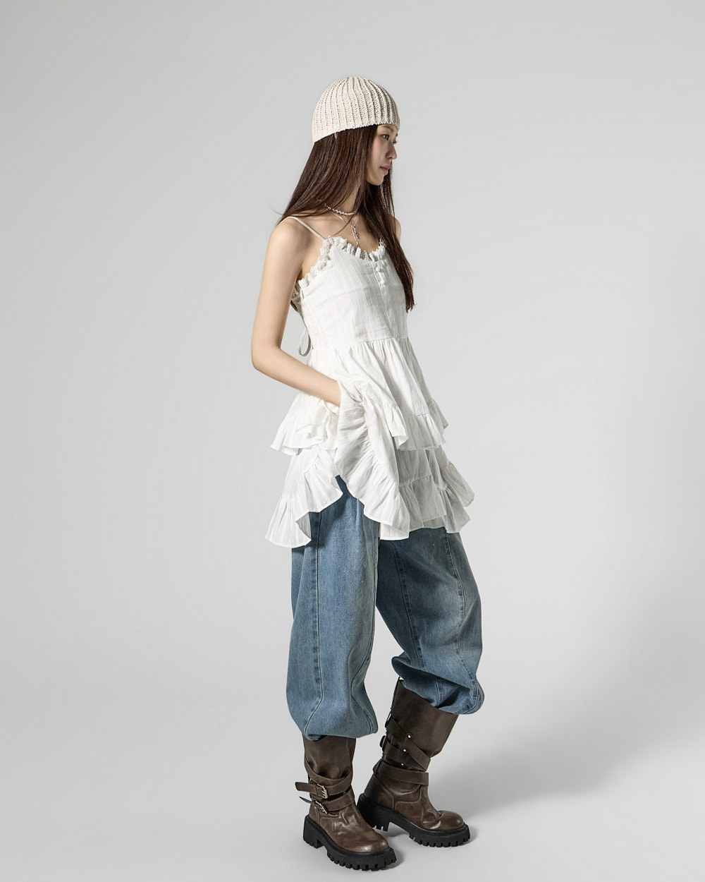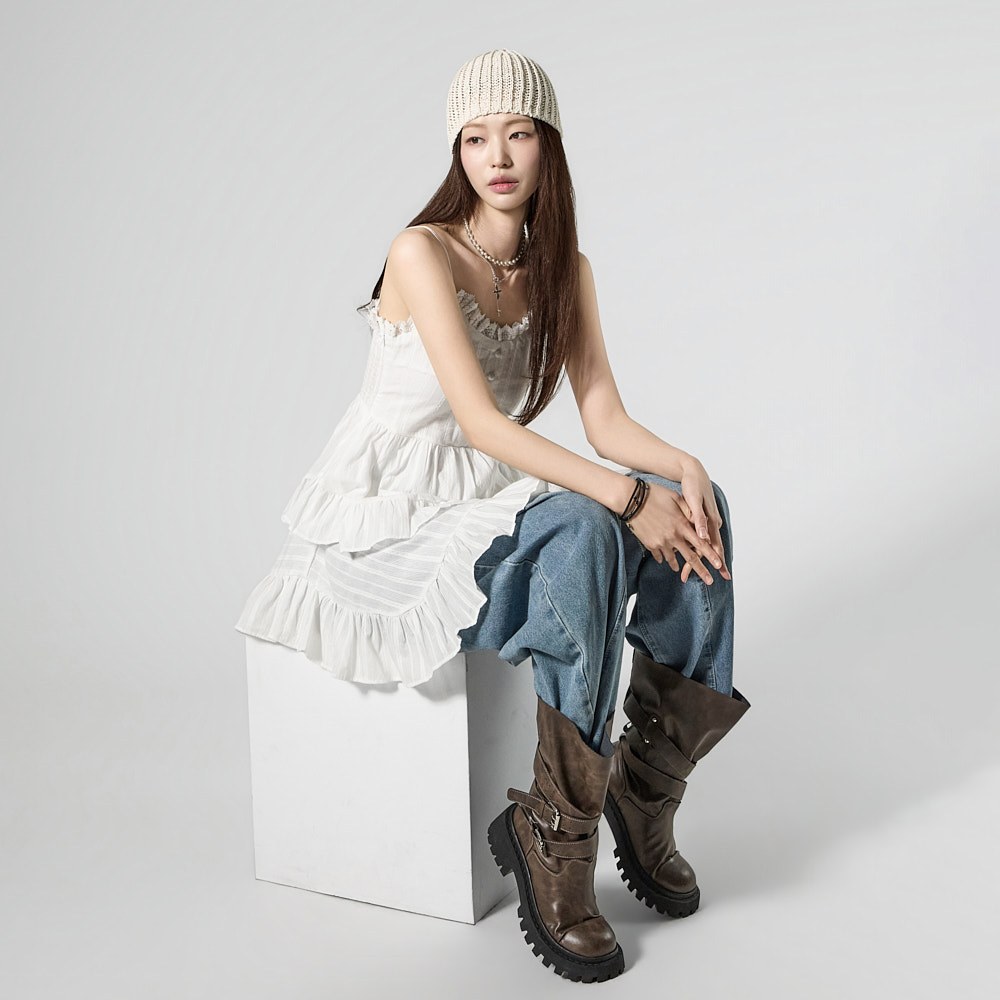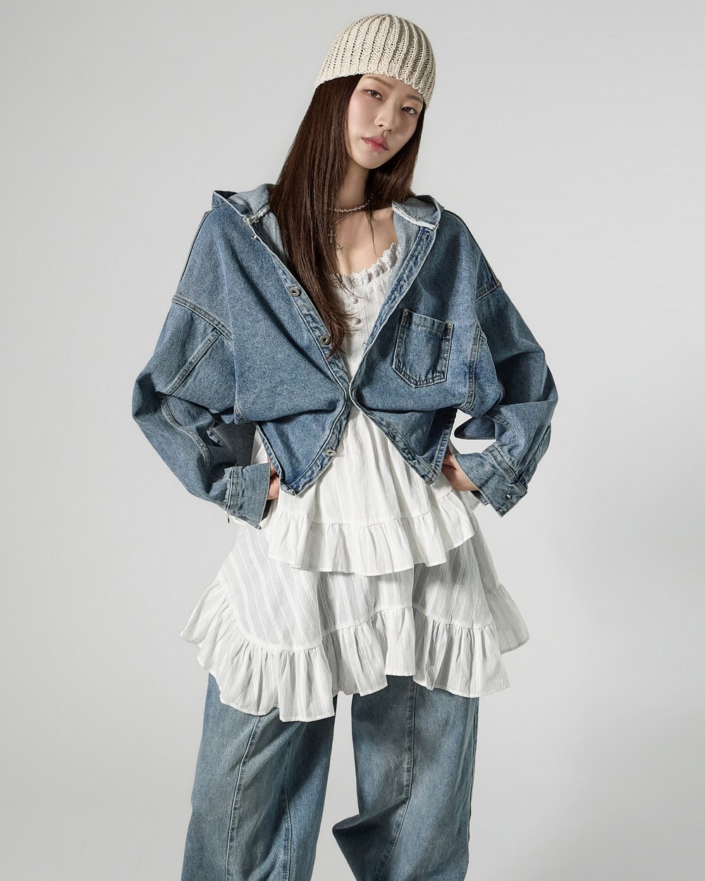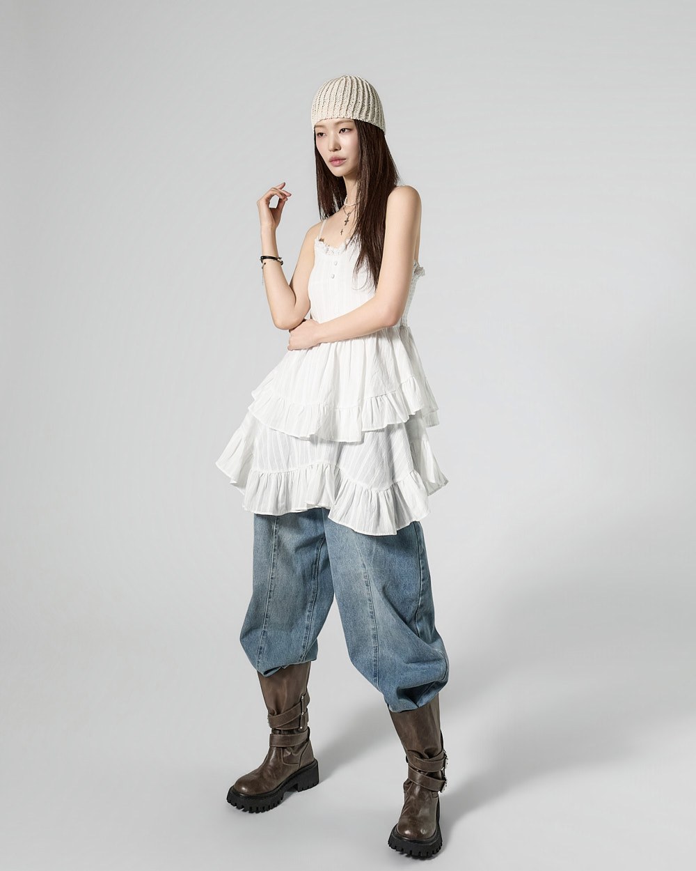 러블리한 무드의 프릴 슬리브리스 원피스입니다.