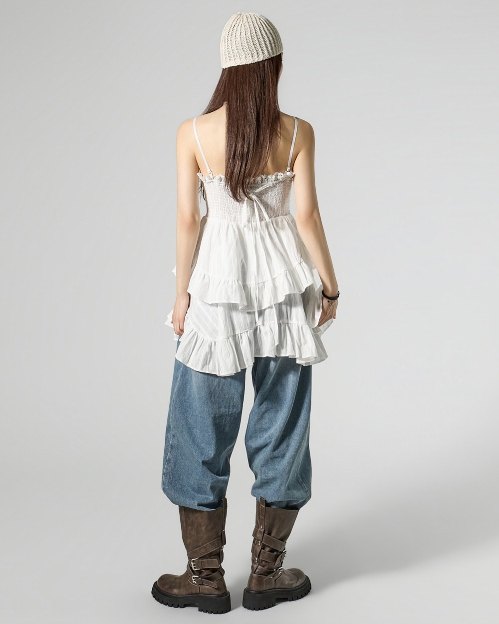뒷 스모크 밴딩과 끈 조절 디테일로