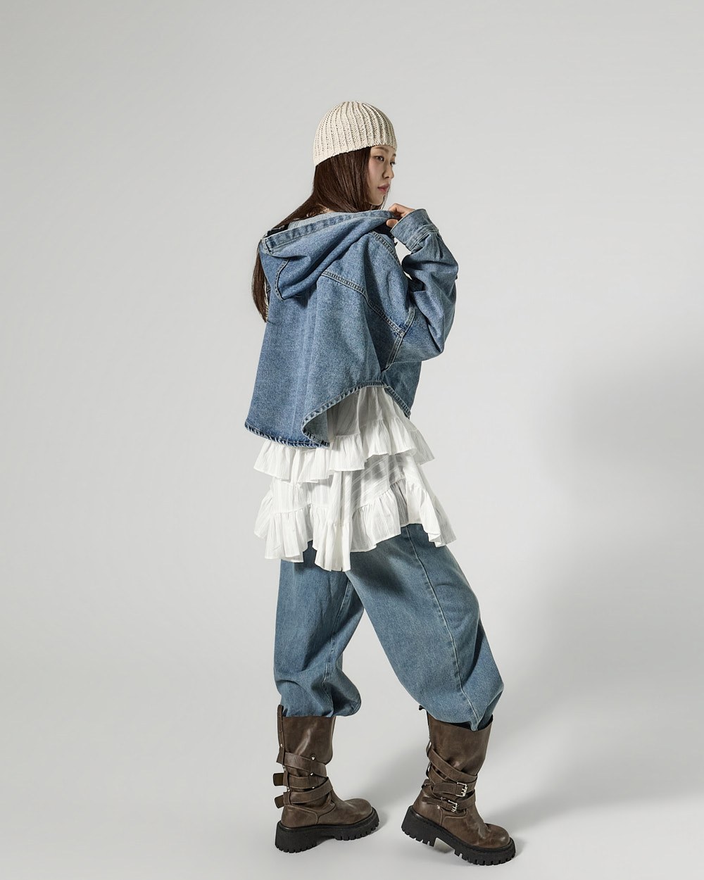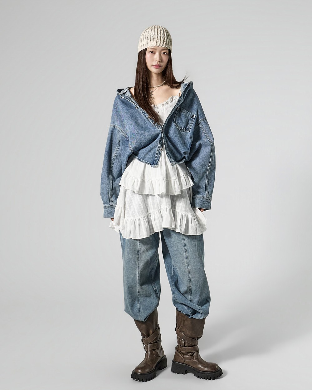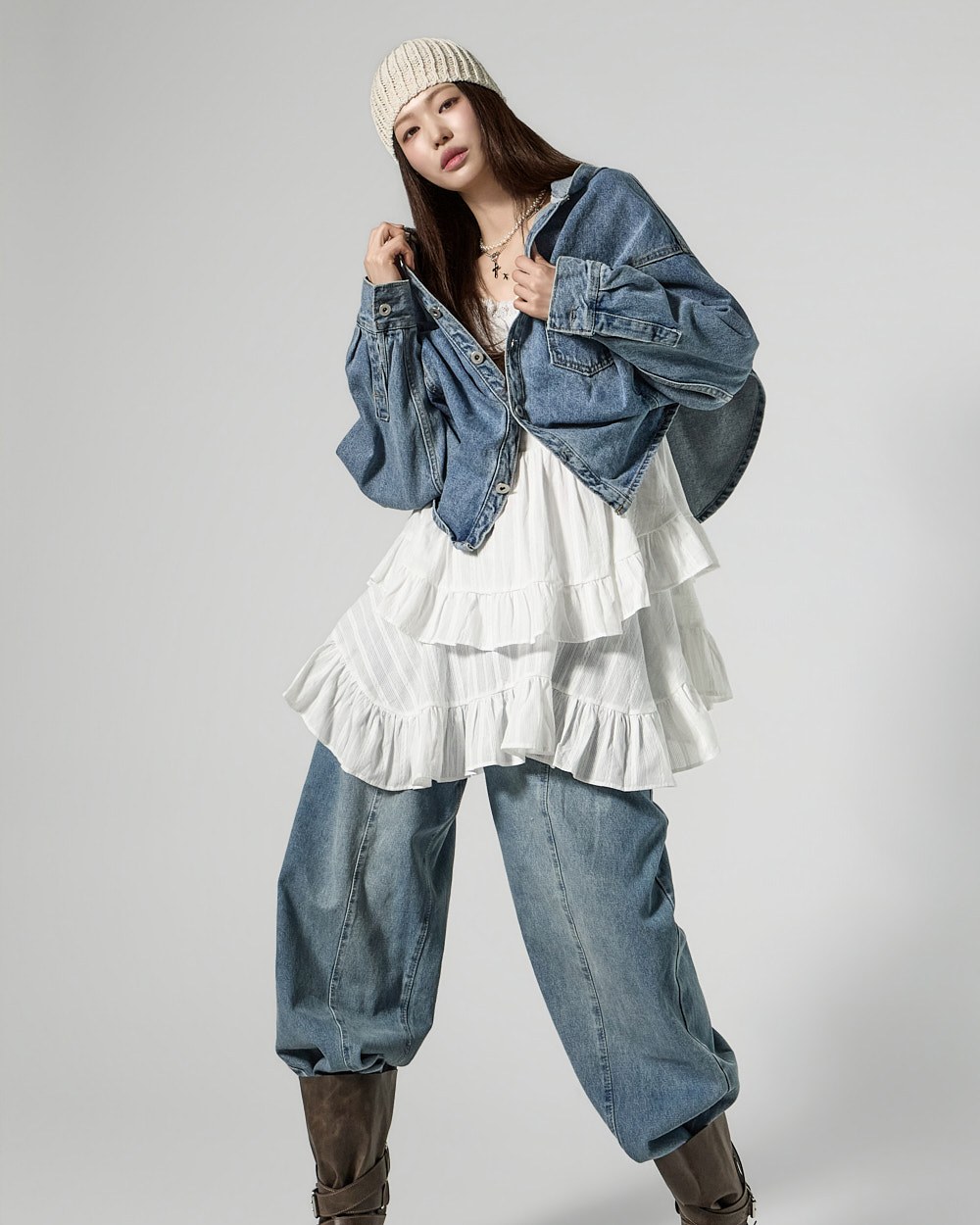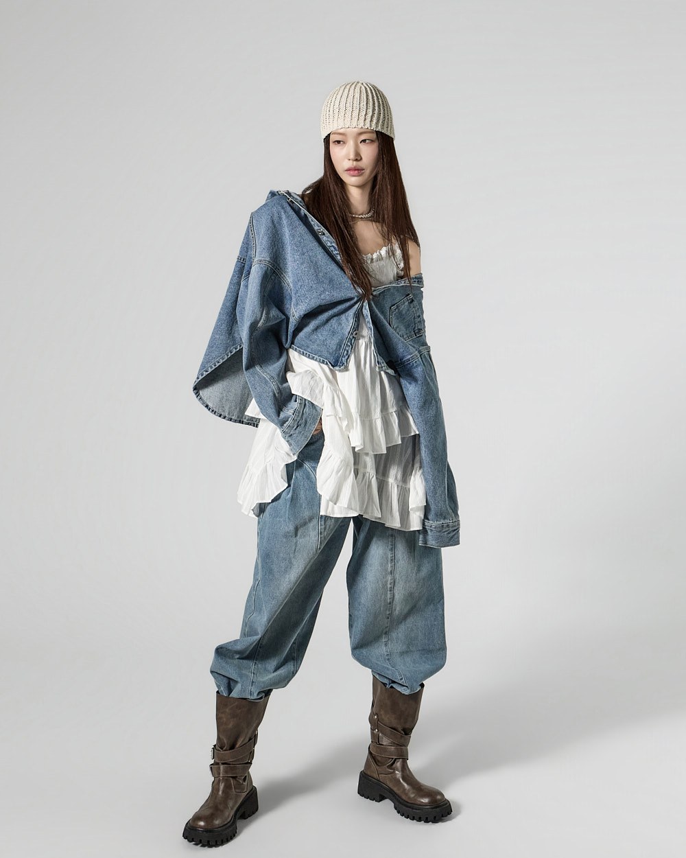 - 데님 소재(청바지, 코팅 진)및 기타 염색된 짙은 색상의 의류는 특성상 물빠짐이나 이염 현상이 발생할 수 있으므로, 첫 세탁 전과 착용 시 주의 부탁드립니다.
