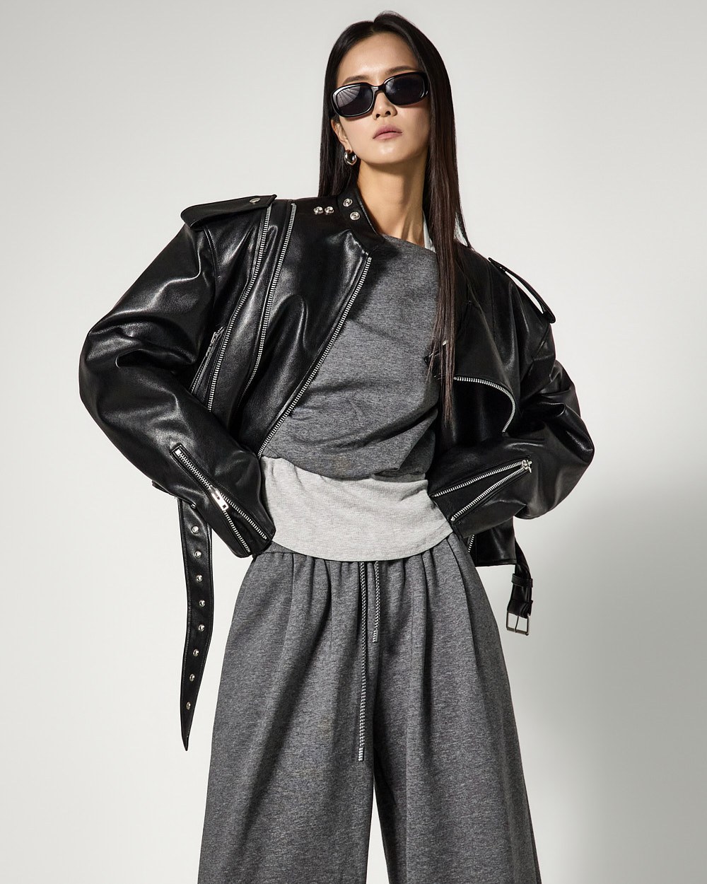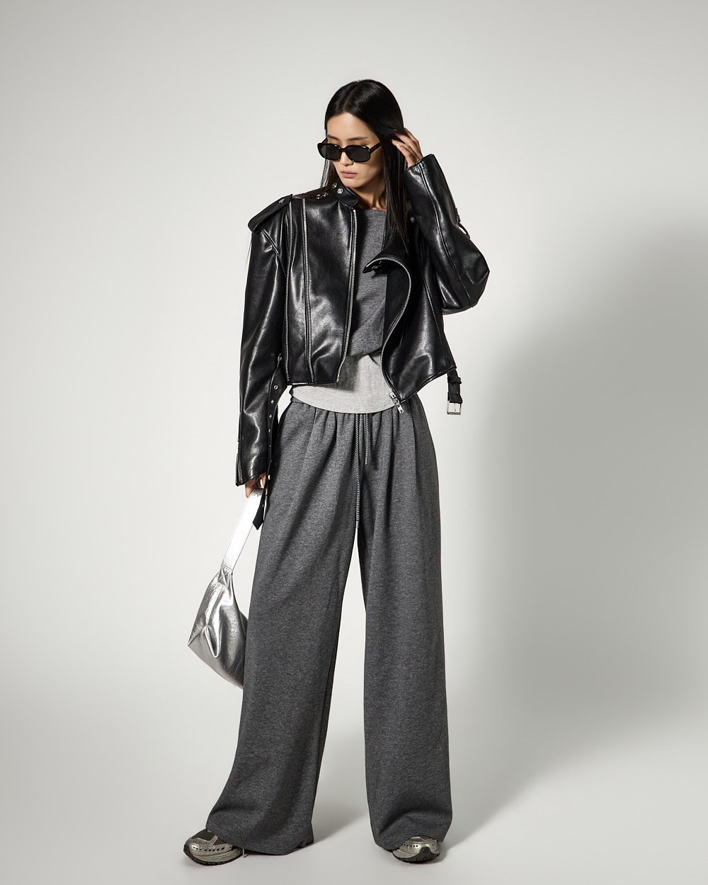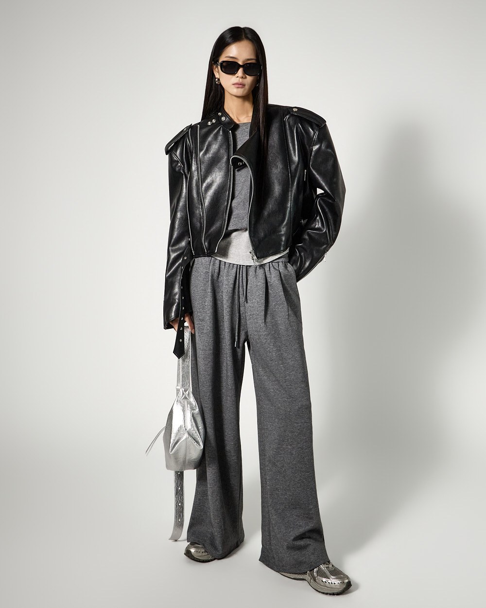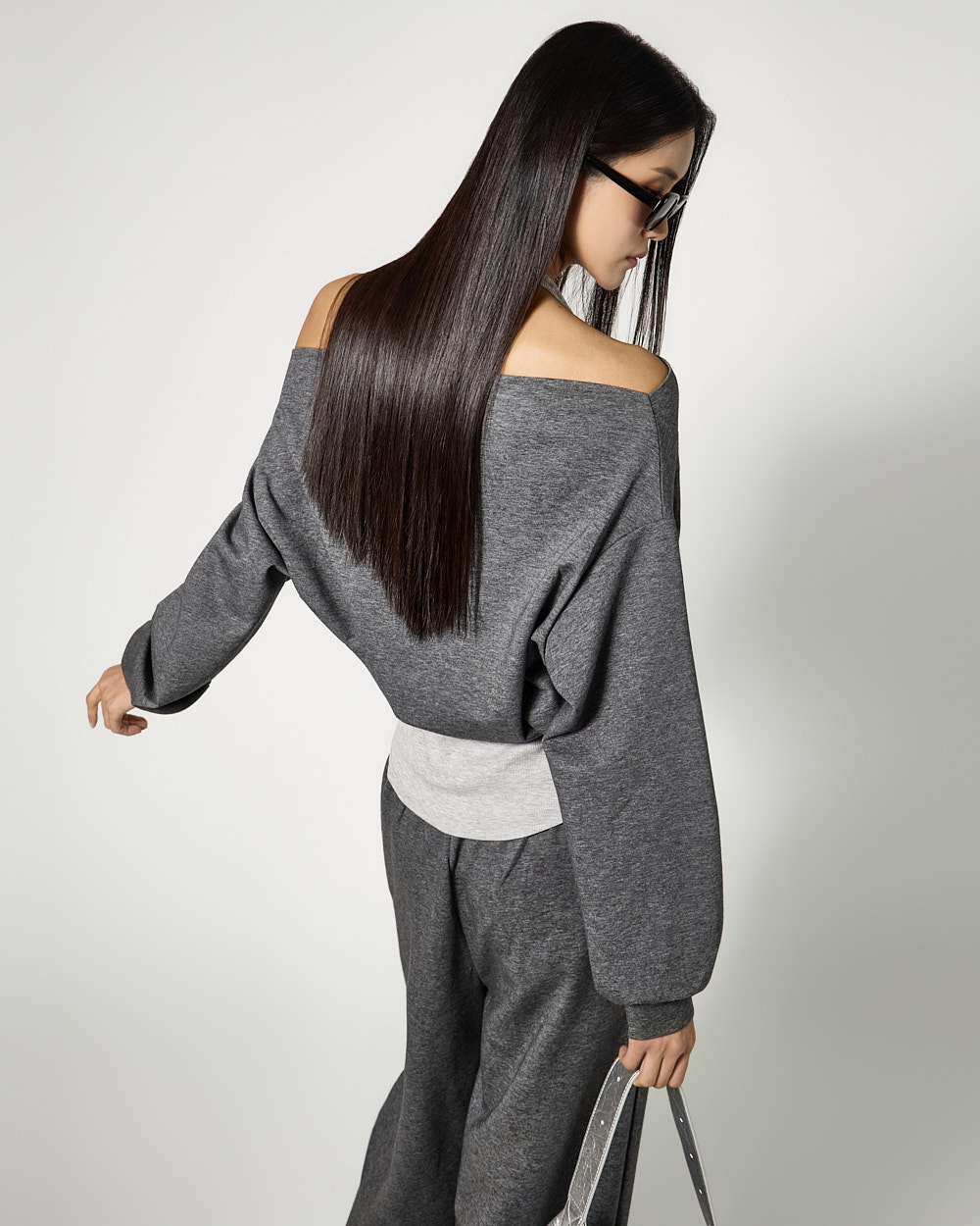 하의는 트레이닝 팬츠로 편안한 착용감을 더했으며,