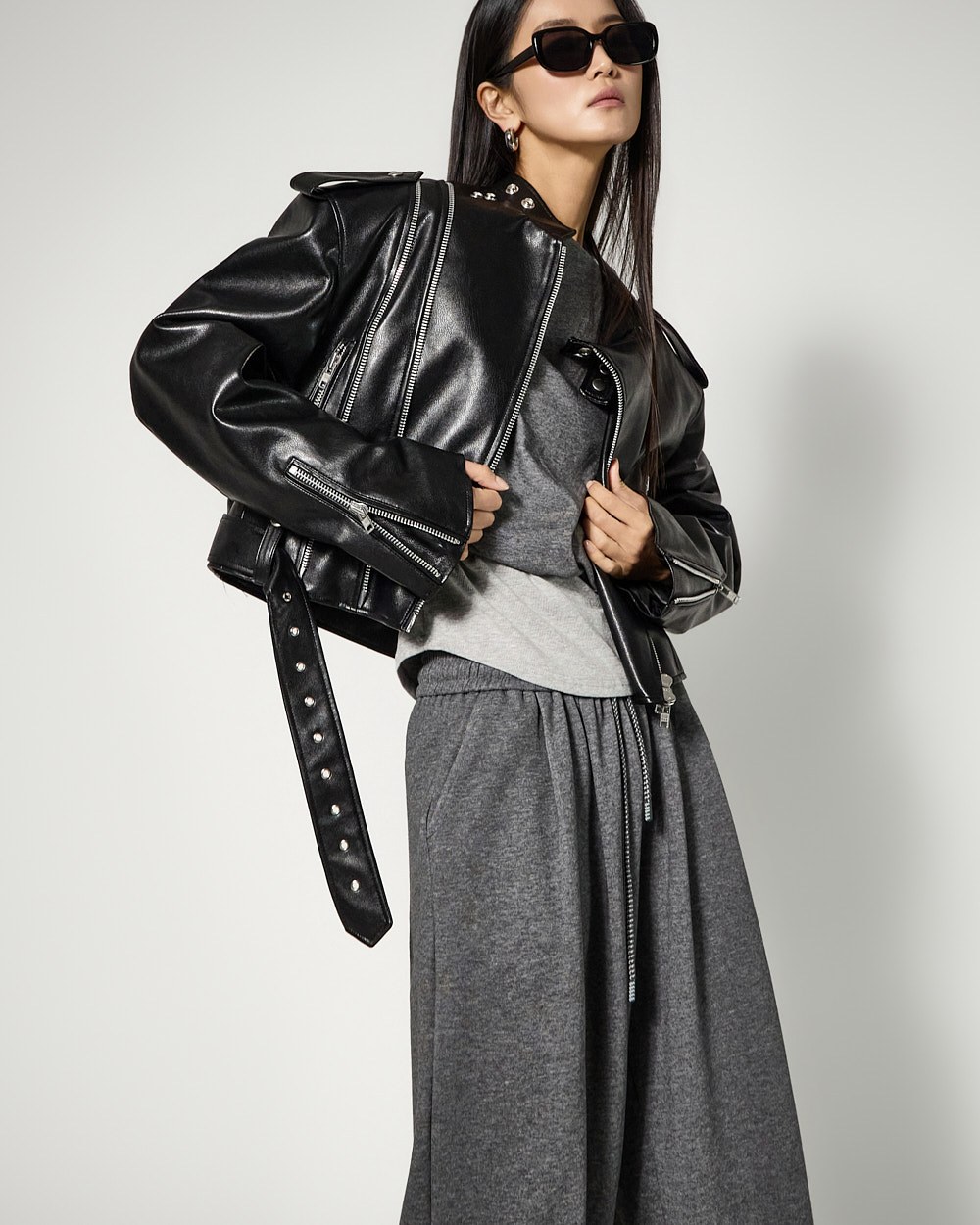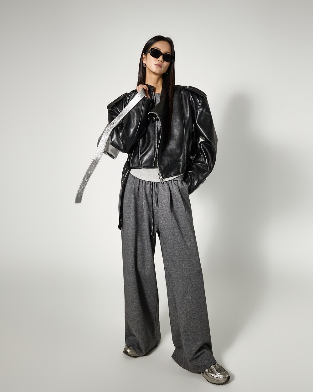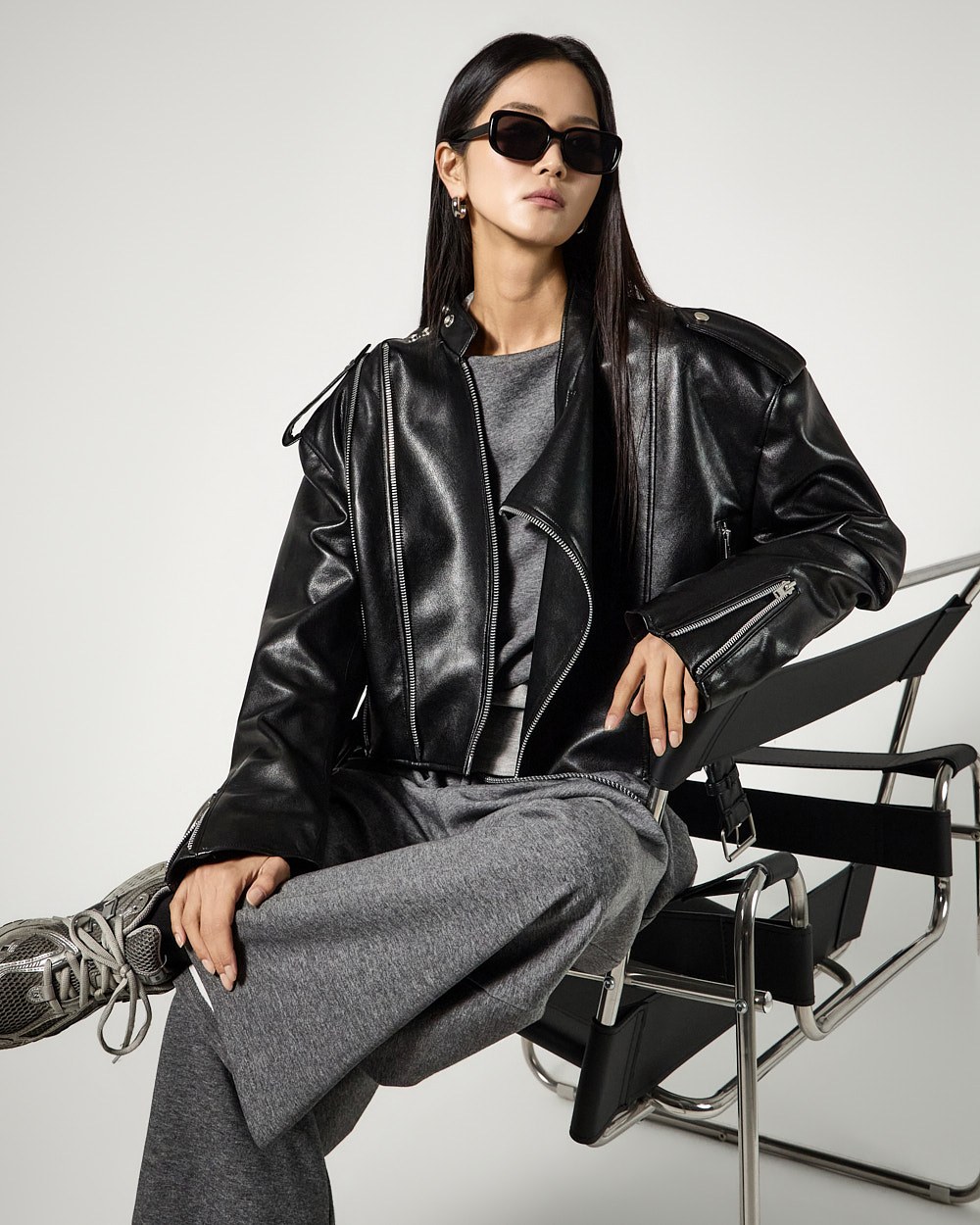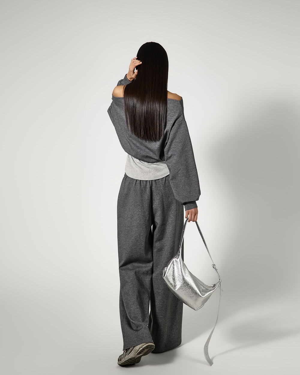 하의는 트레이닝 팬츠로 편안한 착용감을 더했으며,