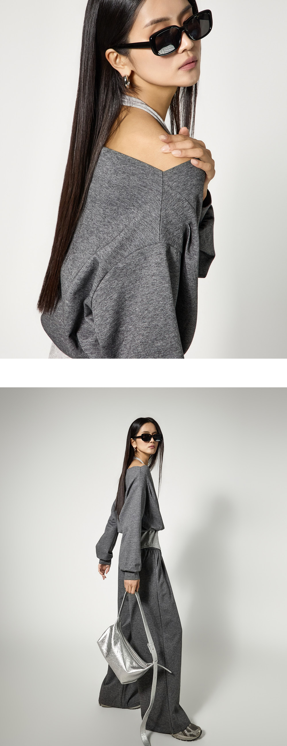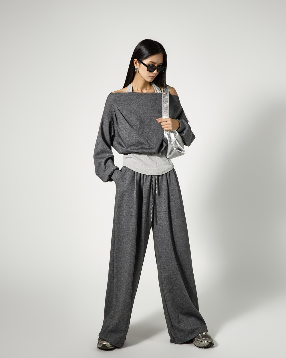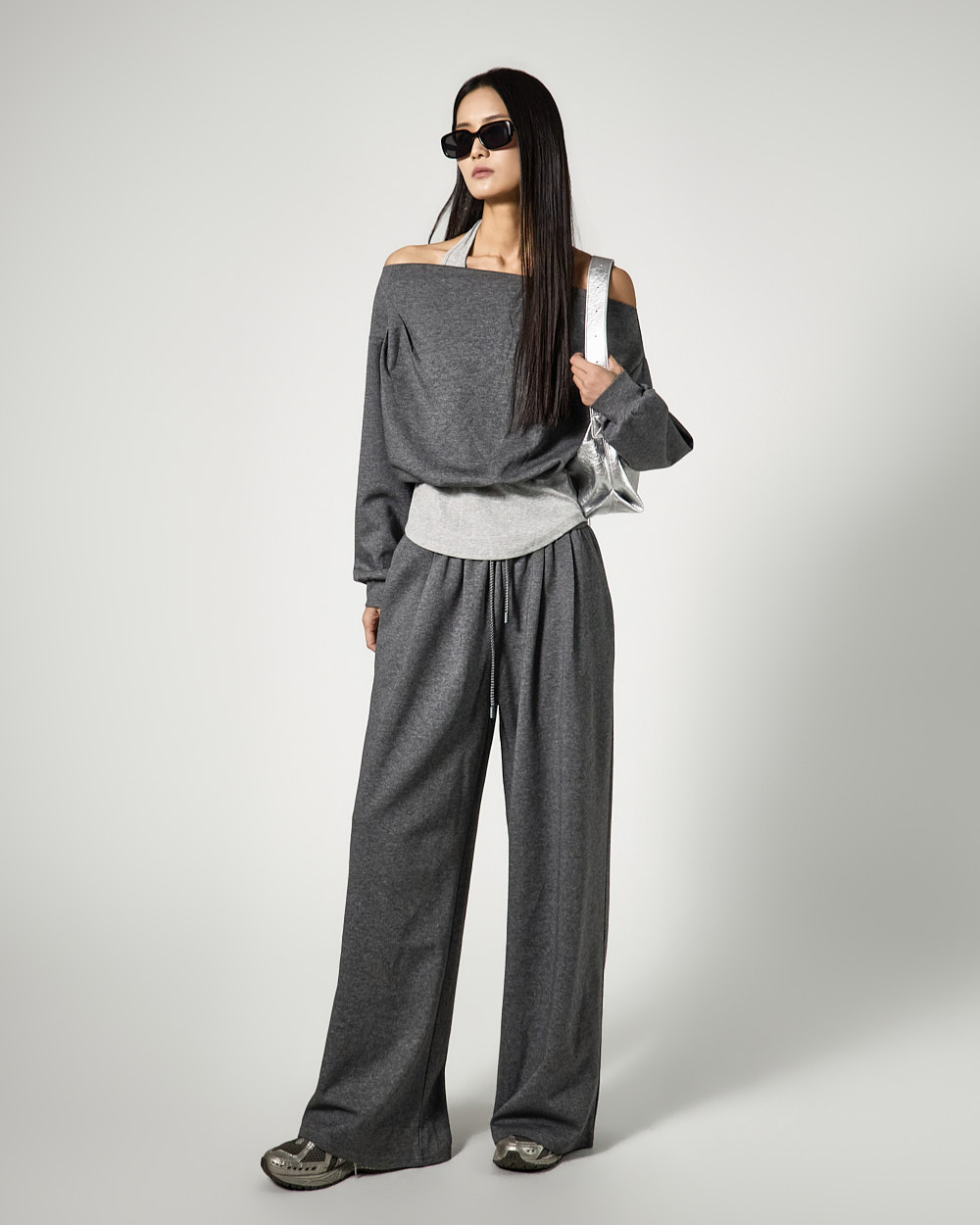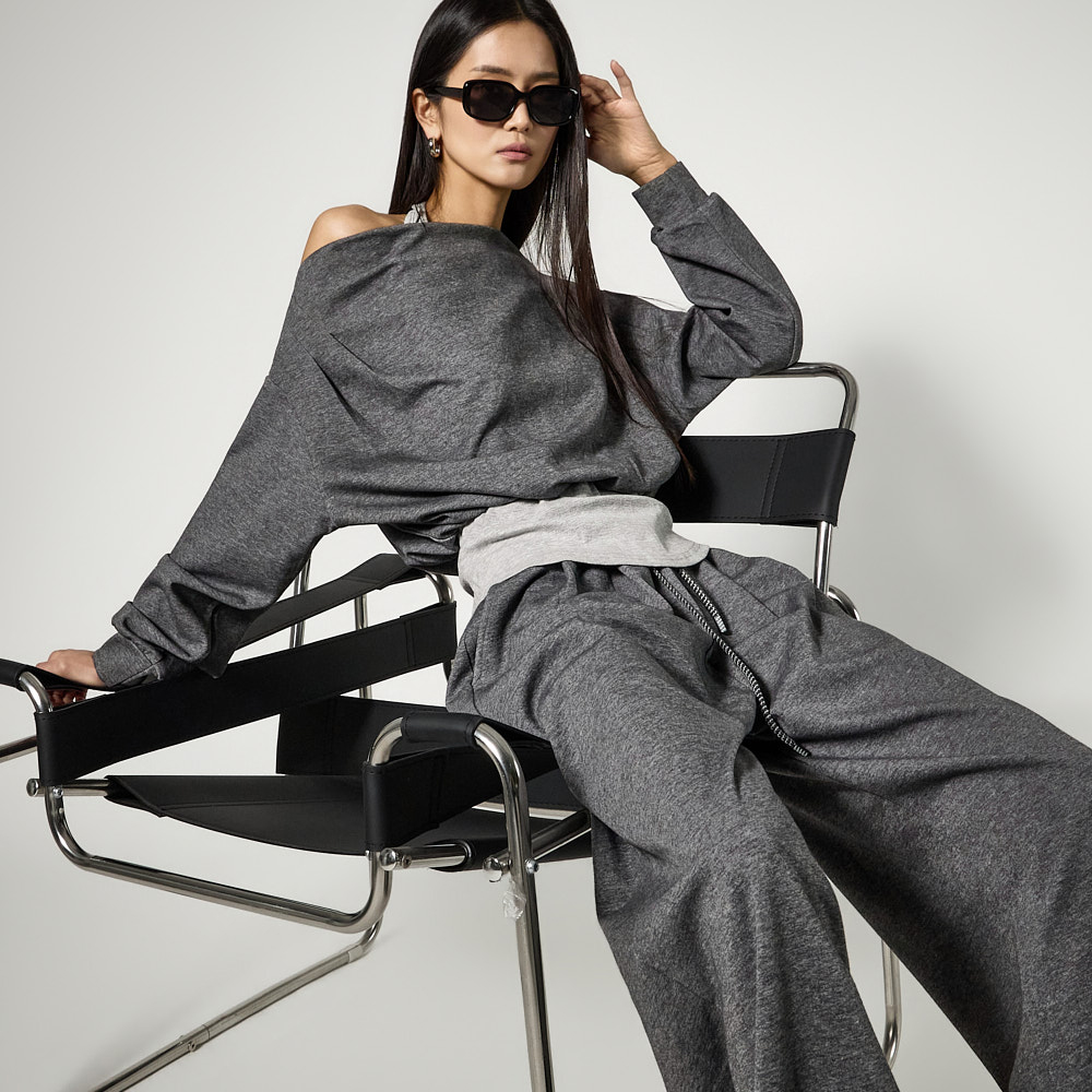 캐주얼한 무드의 홀터넥 트레이닝 세트입니다.