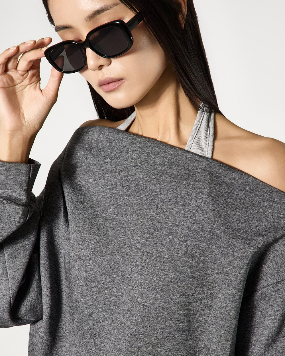 상의는 홀터넥과 오프숄더가 믹스된 디자인으로