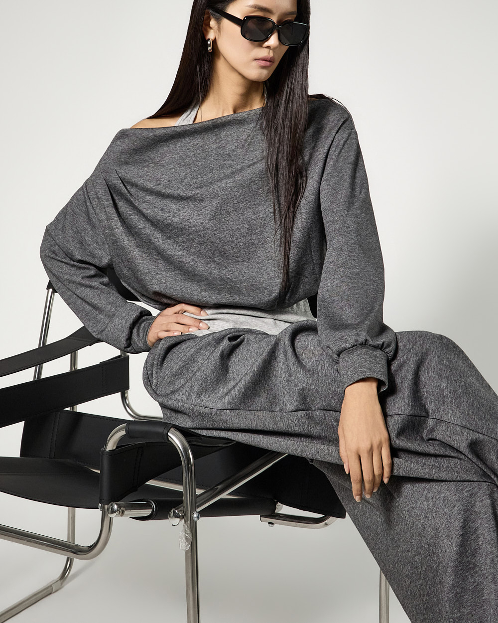 173CM 모델 ONE 사이즈, CHARCOAL 컬러 착용하였습니다.