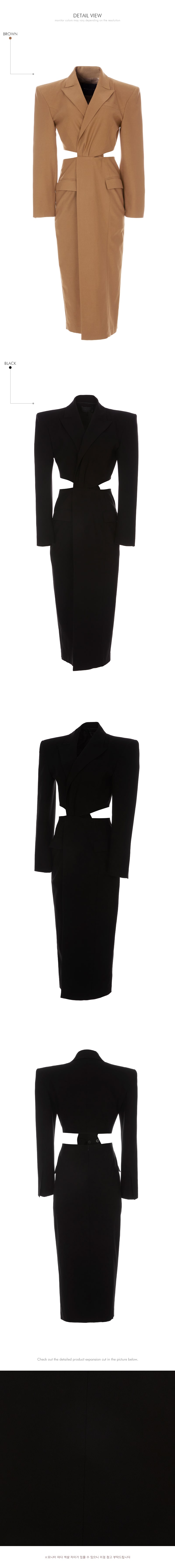 전면 버튼 여밈과 백라인 지퍼 디테일로