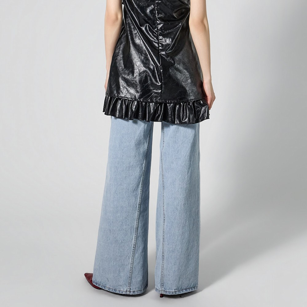 - 데님 소재(청바지, 코팅 진)및 기타 염색된 짙은 색상의 의류는 특성상 물빠짐이나 이염 현상이 발생할 수 있으므로, 첫 세탁 전과 착용 시 주의 부탁드립니다.