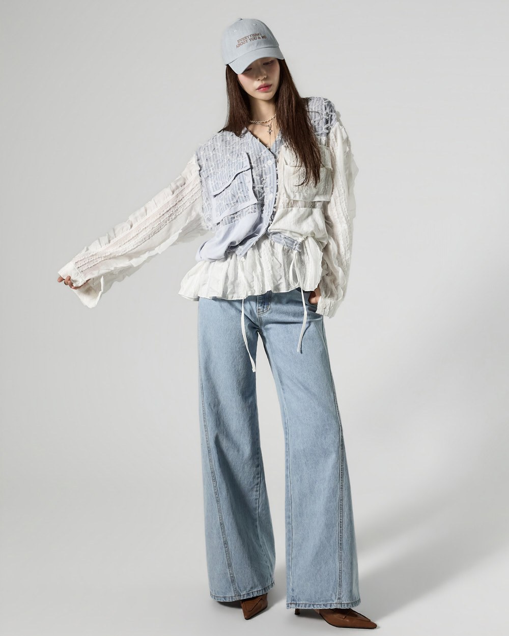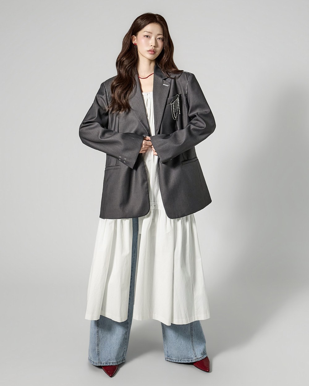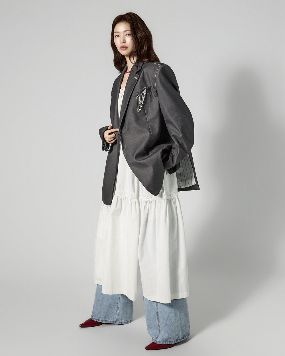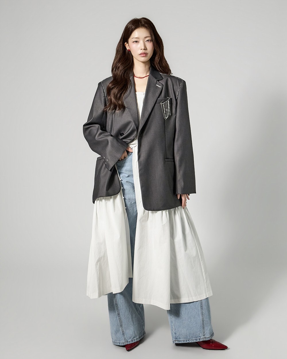 와이드 핏 실루엣으로 여유 있게 떨어지며