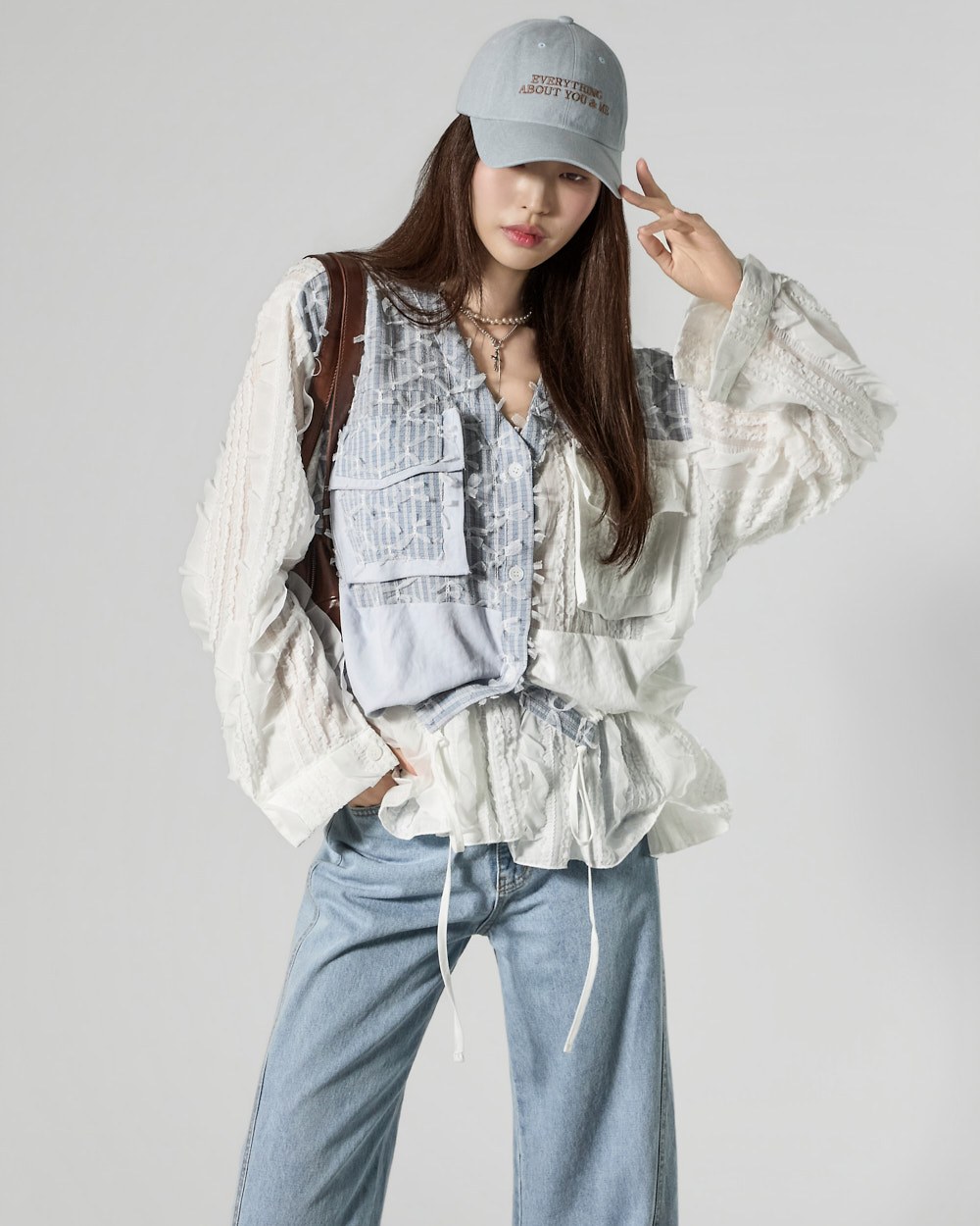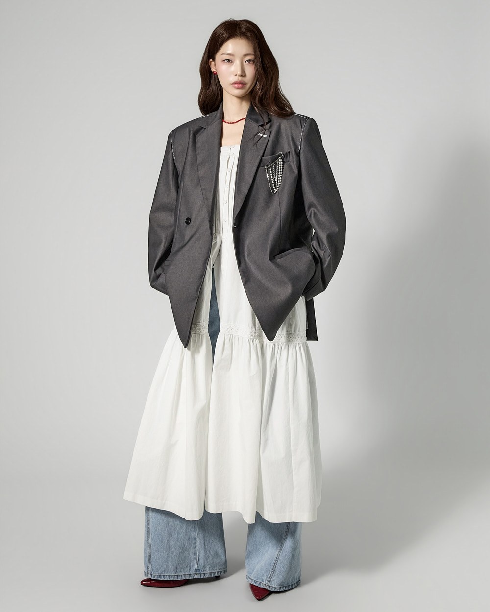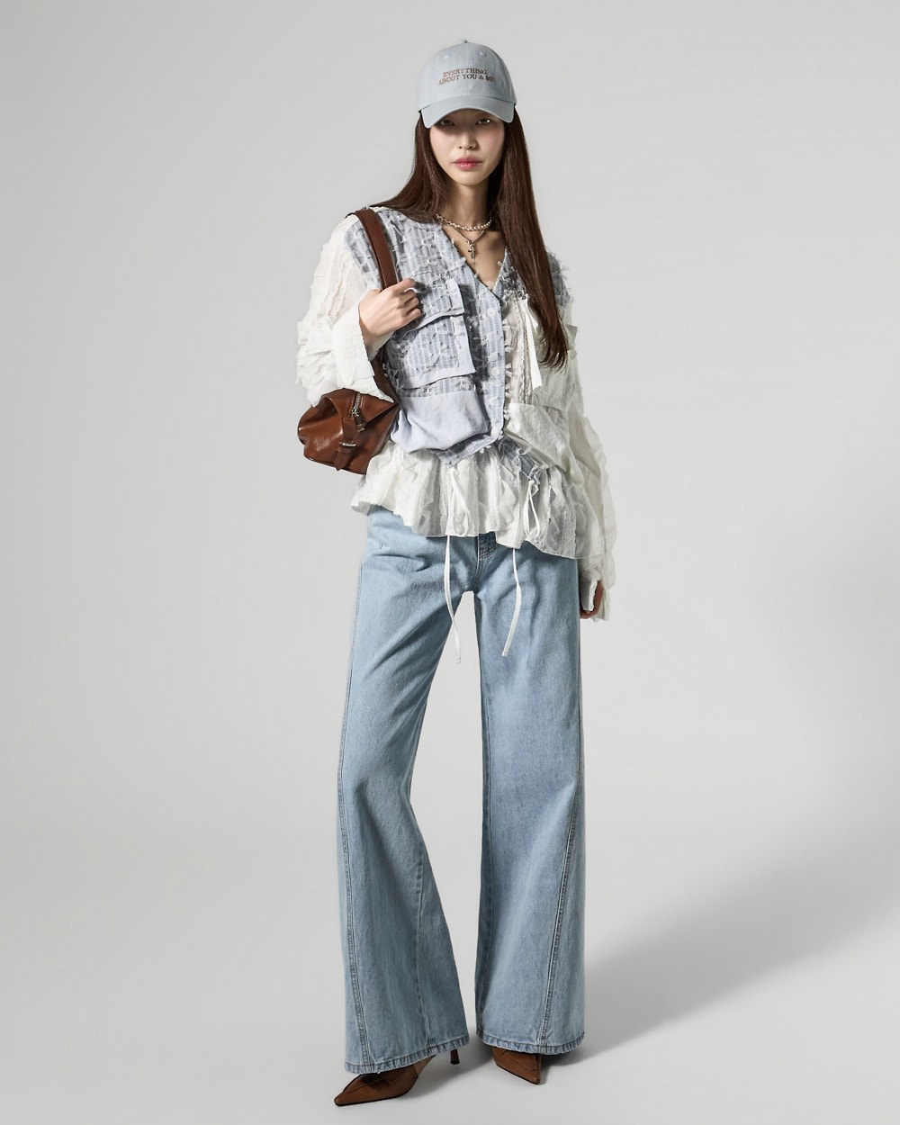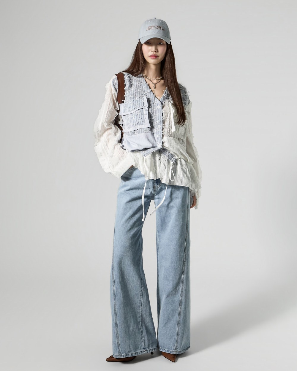 와이드 핏 실루엣으로 여유 있게 떨어지며
