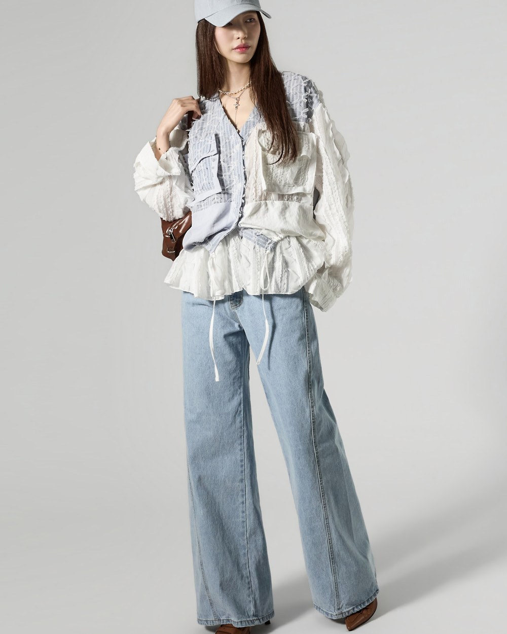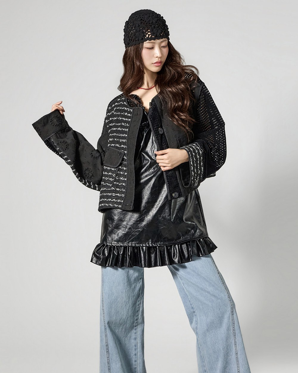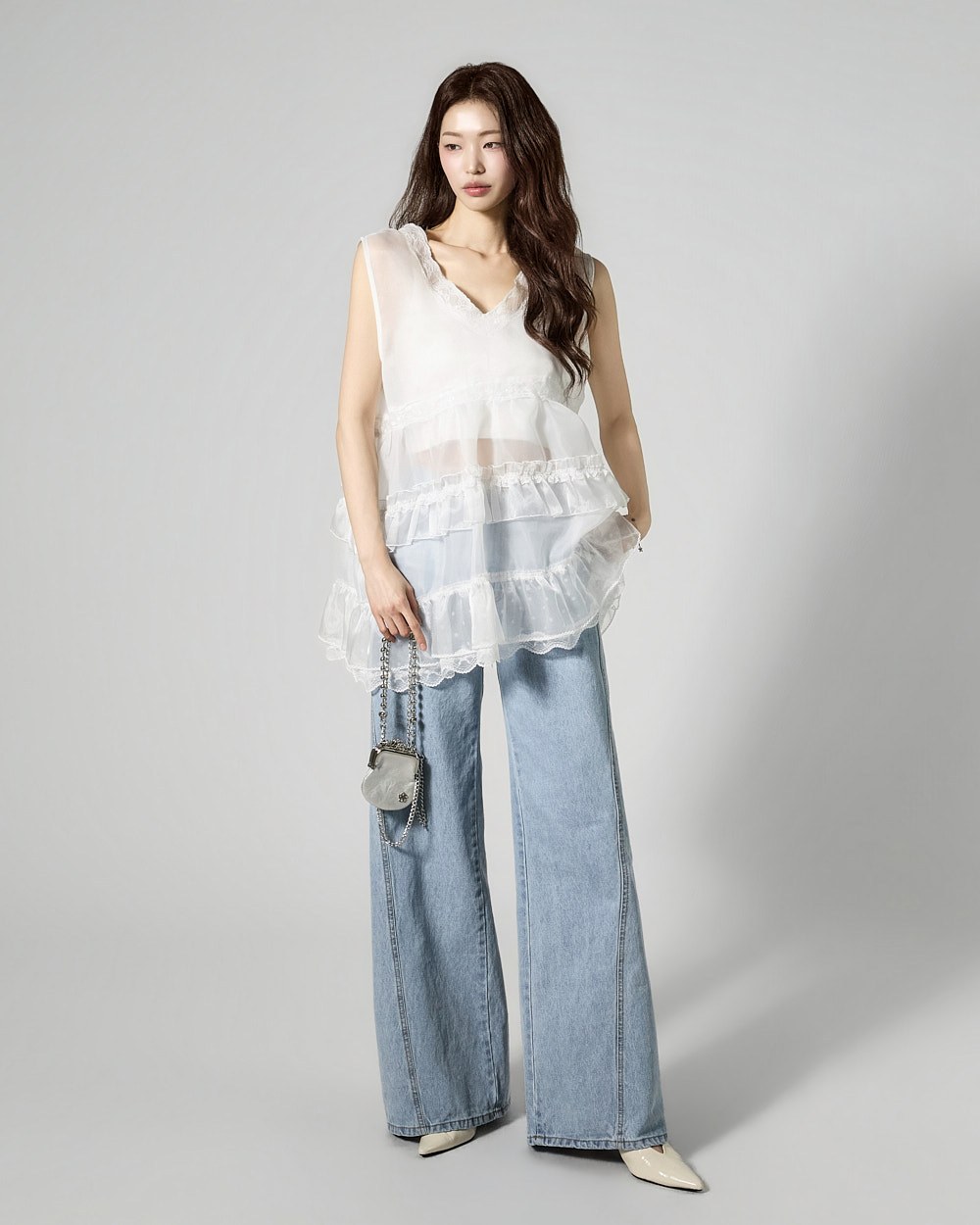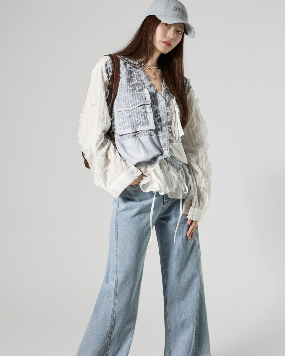 와이드 핏 실루엣으로 여유 있게 떨어지며