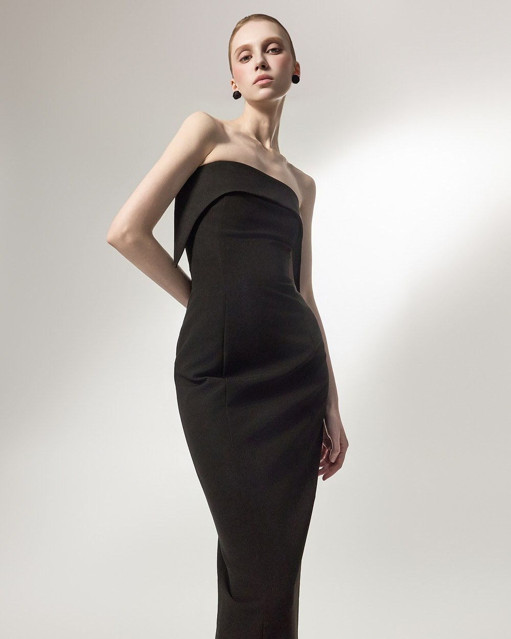 우아한 무드의 오프숄더 원피스입니다.