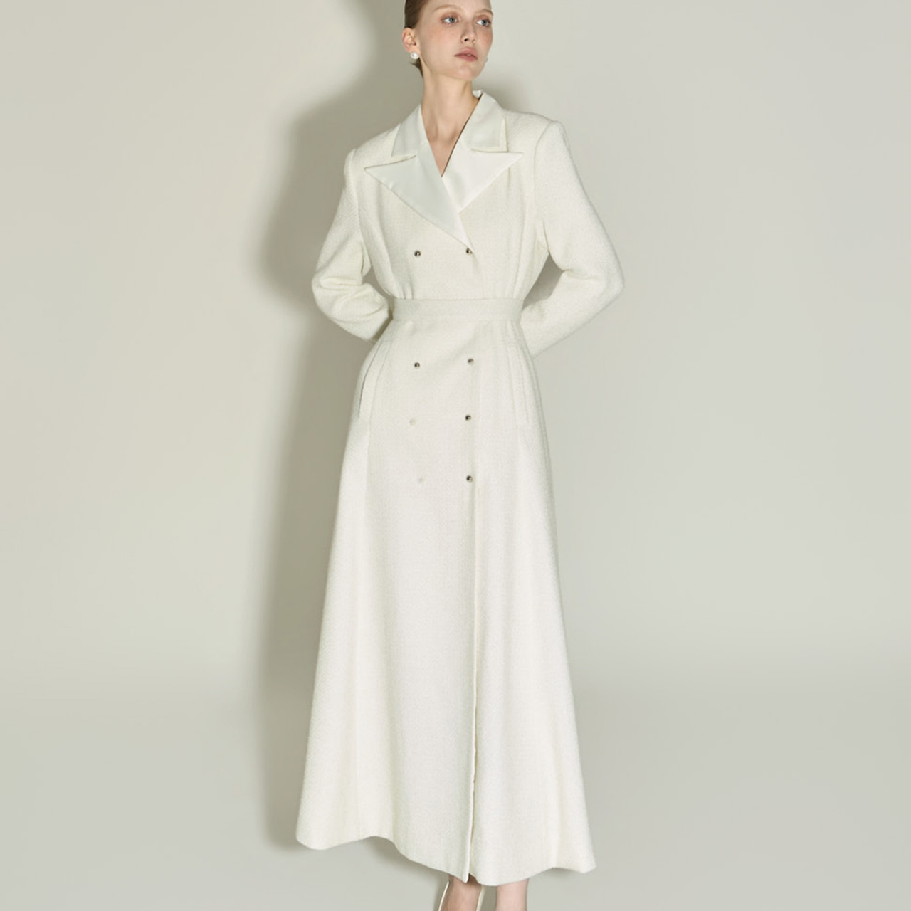 테일러드 카라와 전면 더블 버튼 디테일이