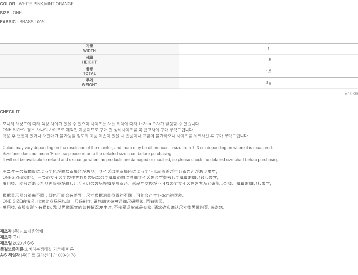 • 액세서리 및 잡화는 장시간 보관 및 착용 시 변색이나 변형이 될 수 있습니다.
