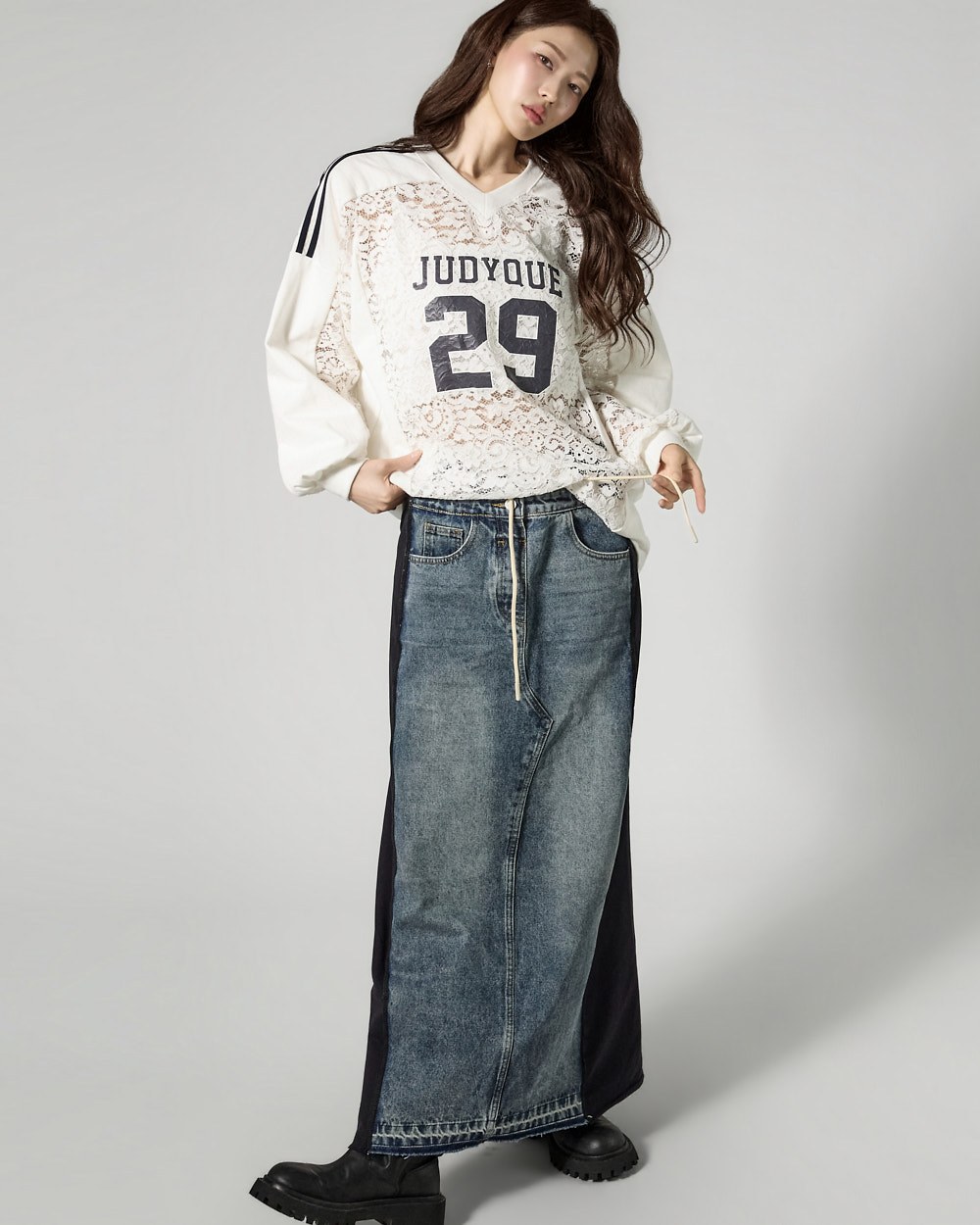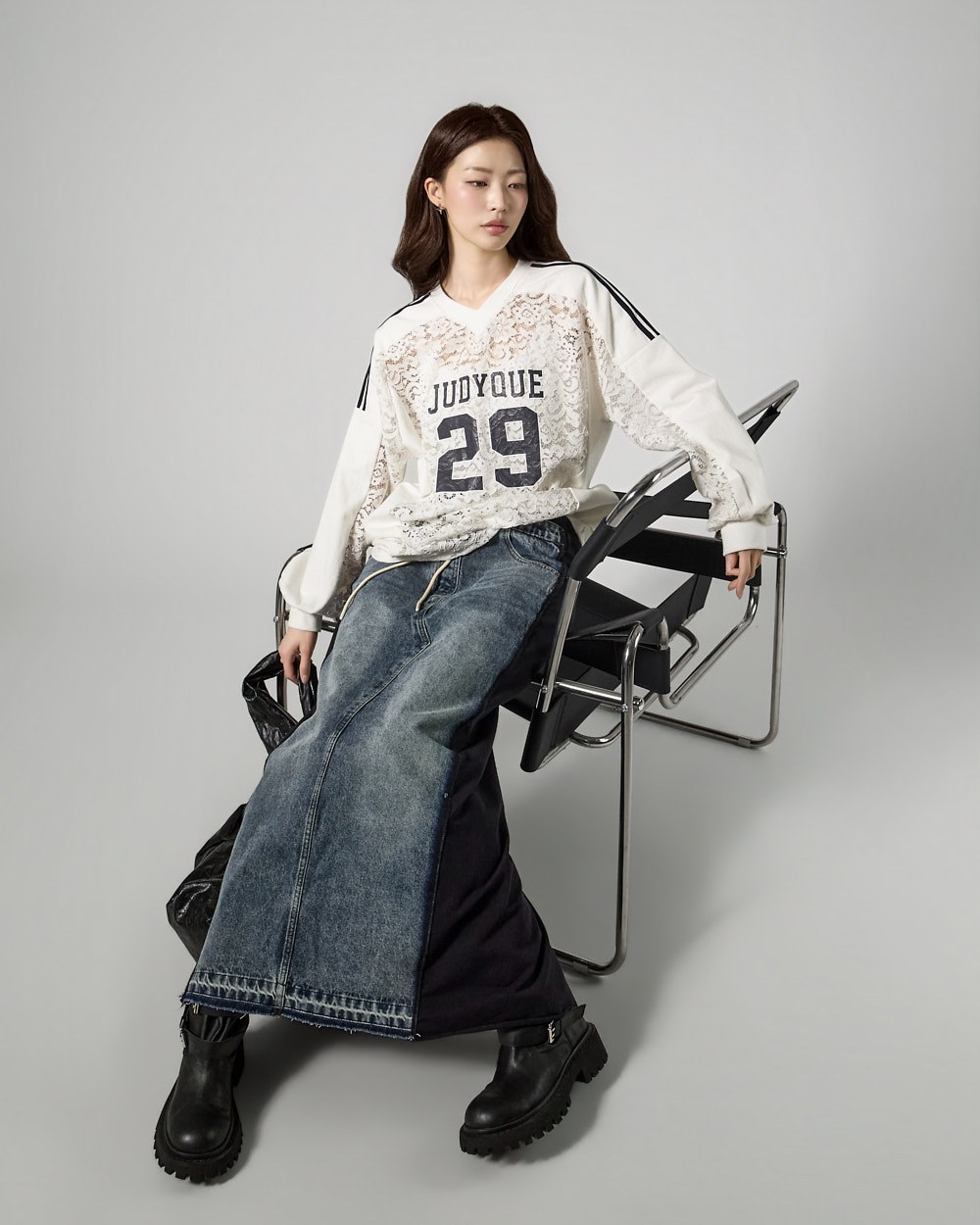 배색 포인트가 들어간 럭비 맨투맨 디자인으로