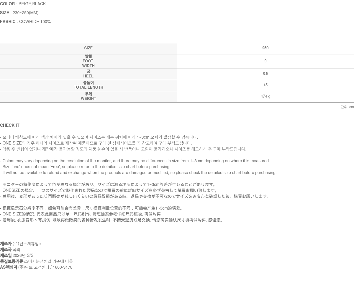 - 고객 변심에 의한 교환/반품 배송비는 고객부담 / 오배송 및 제품 불량으로 인한 교환/반품 배송비는 딘트 부담입니다.