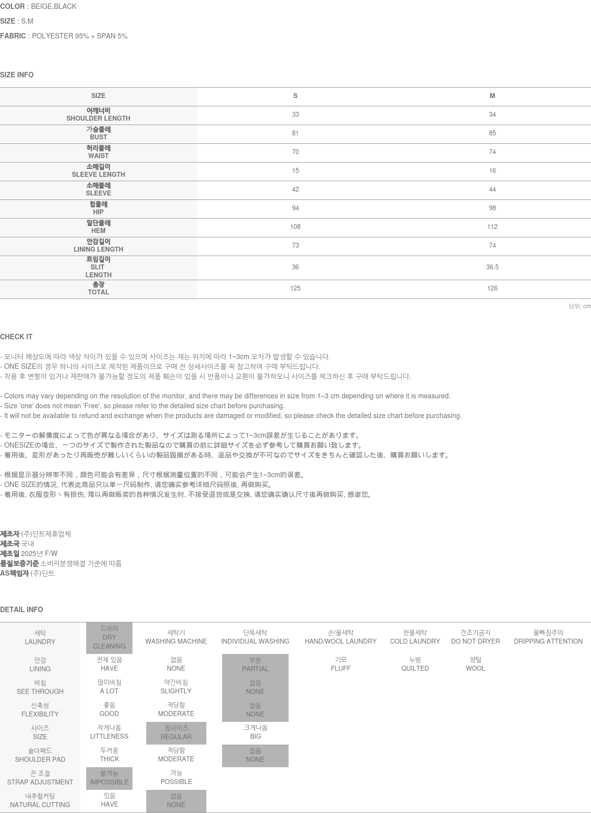 173CM 모델 S 사이즈, BEIGE 컬러 착용하였습니다.