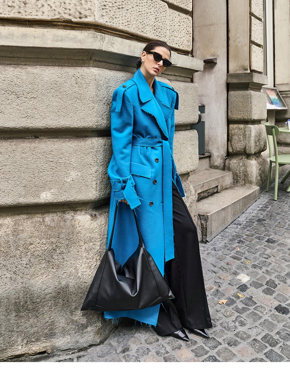 스타일리시하면서 와이드한 테일러드 카라 네크라인 디테일로