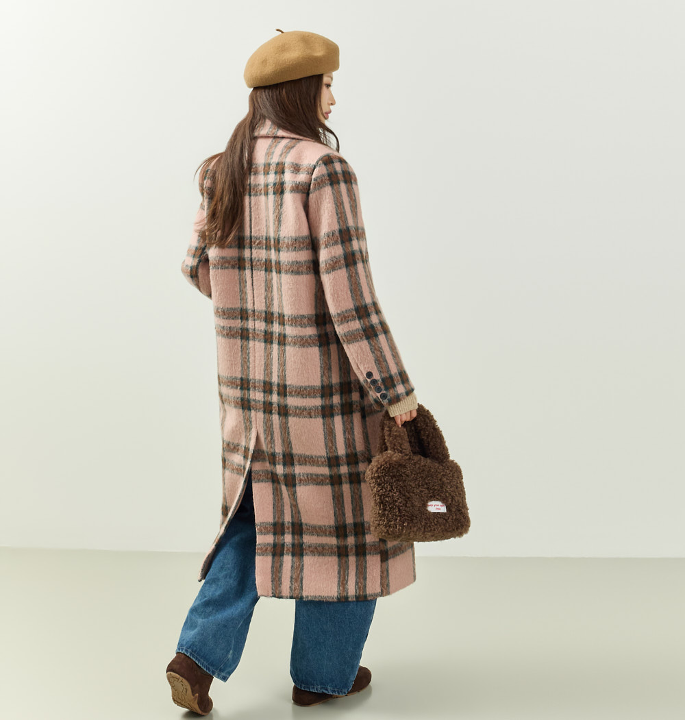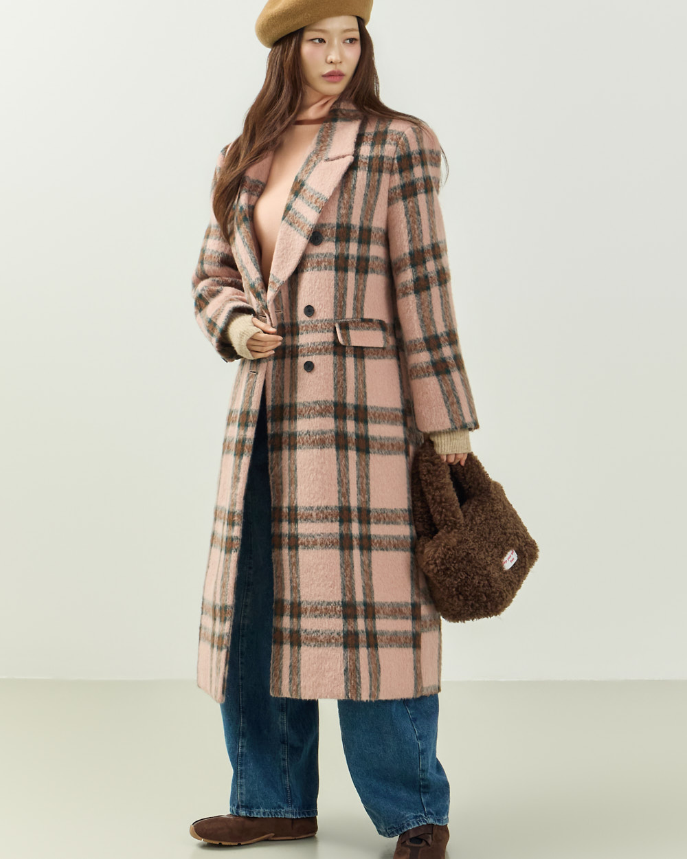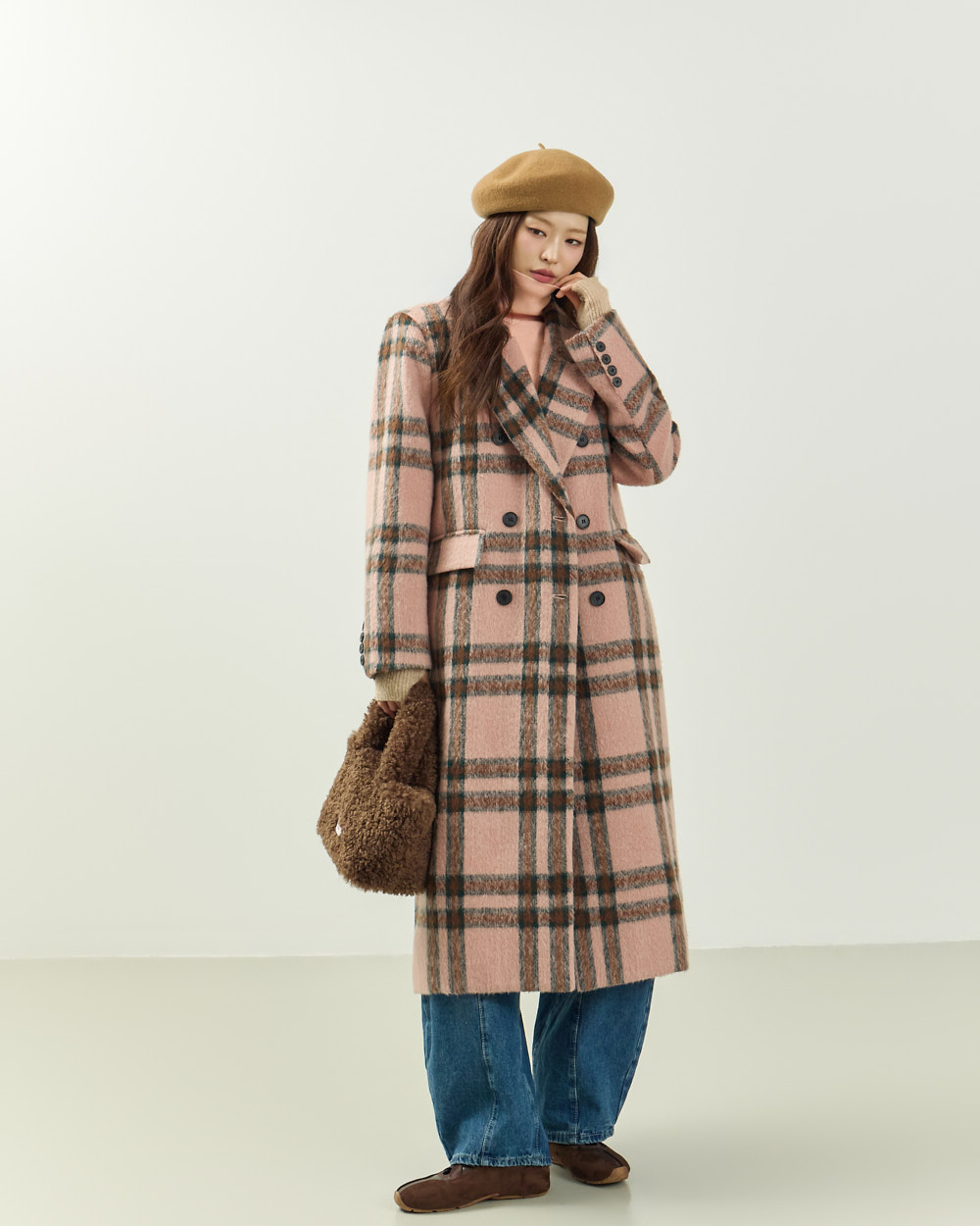캐주얼한 무드의 모헤어 체크 롱 코트입니다.