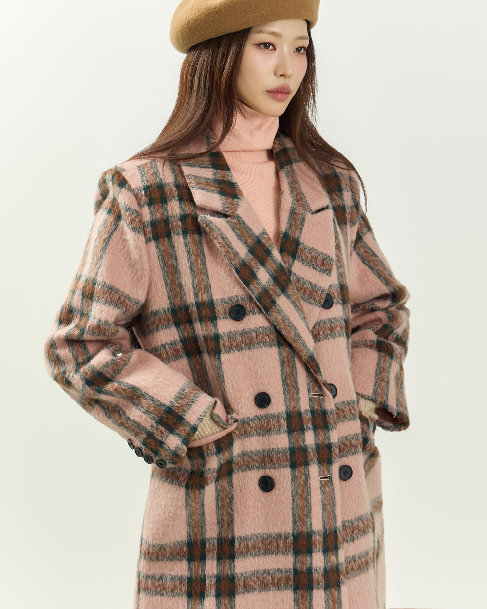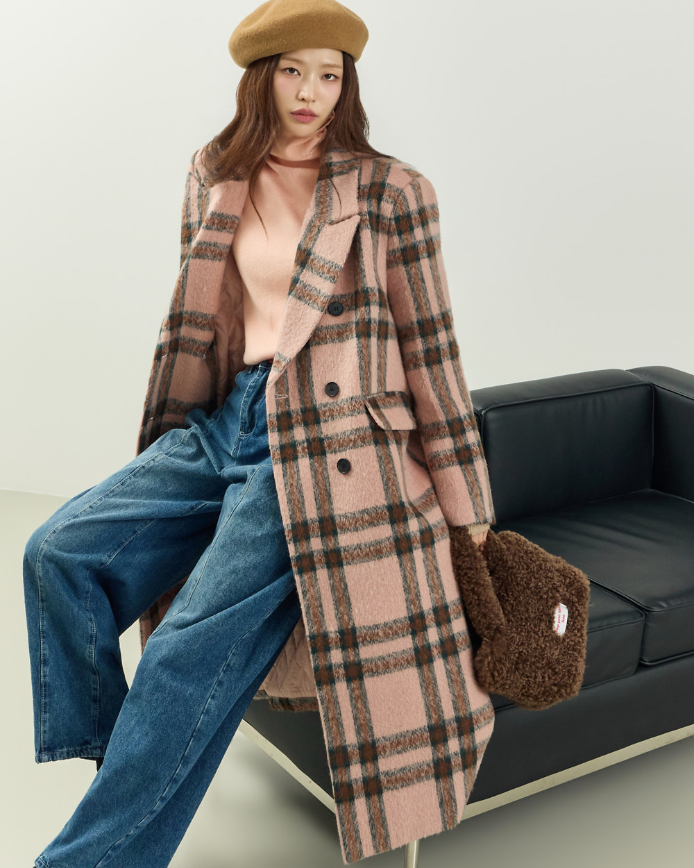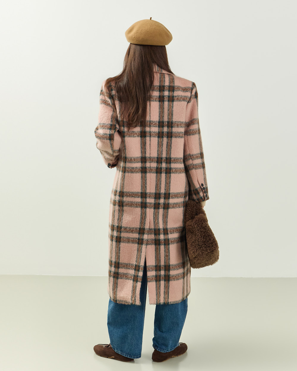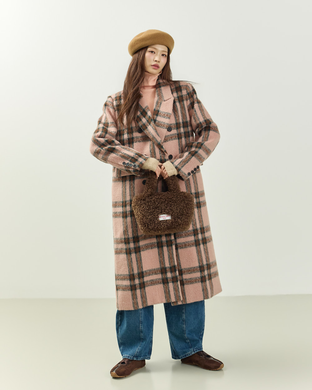 캐주얼한 무드의 모헤어 체크 롱 코트입니다.
