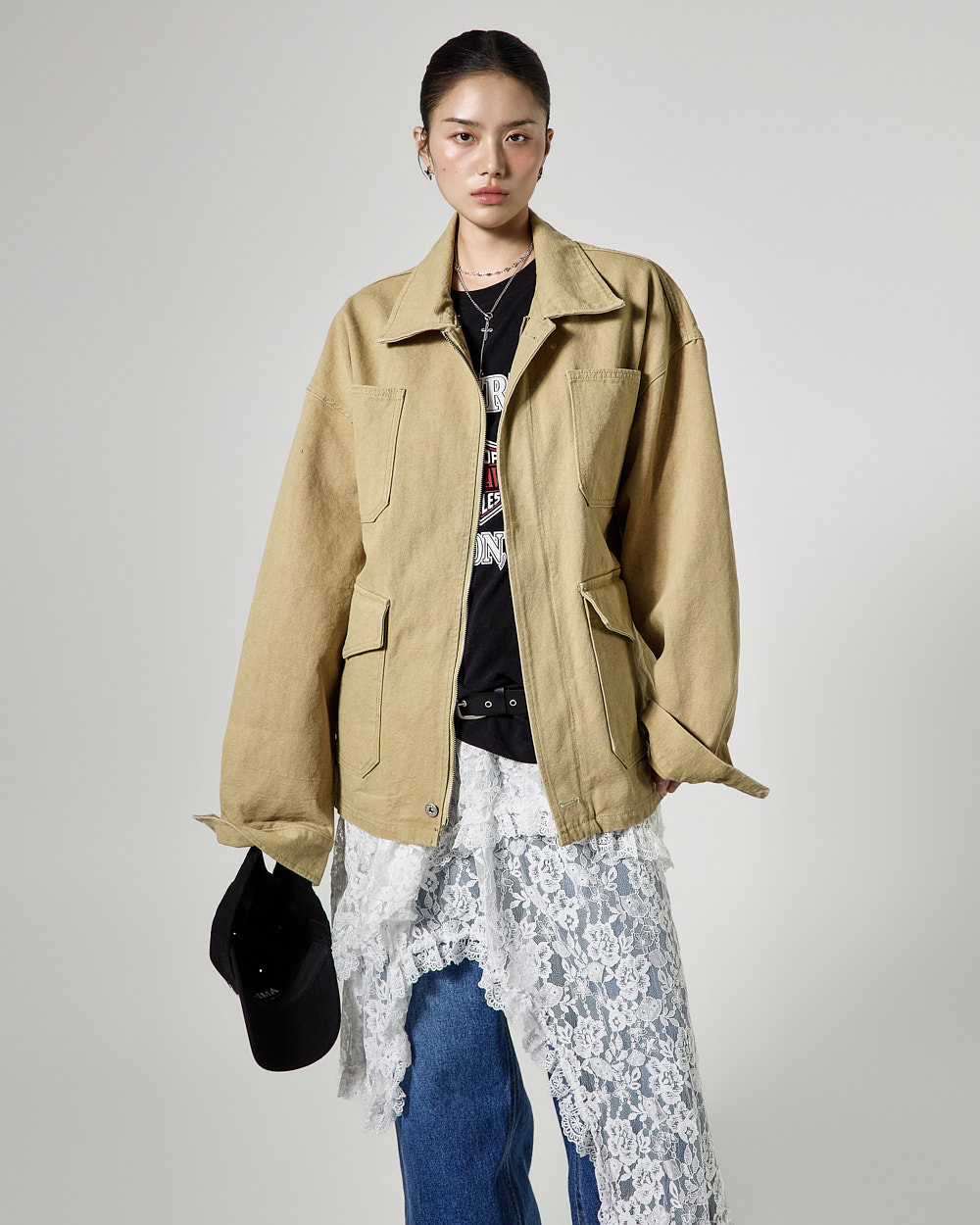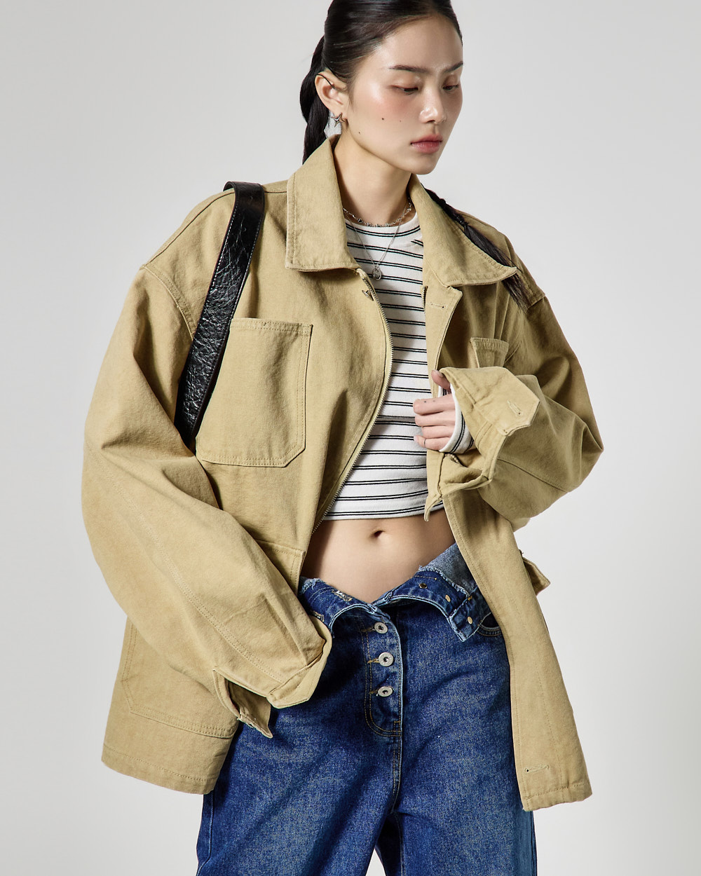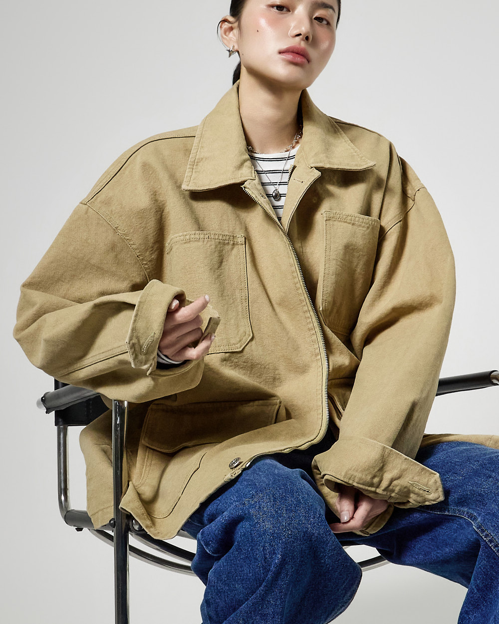 캐주얼 무드의 포켓 워크 점퍼입니다.