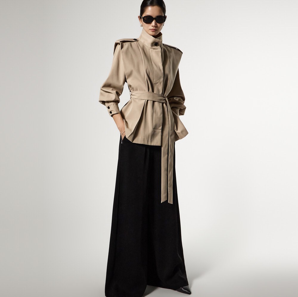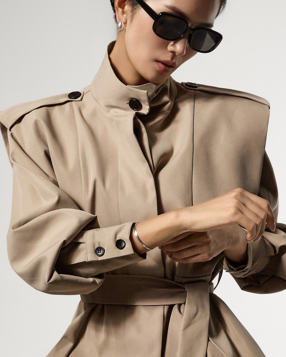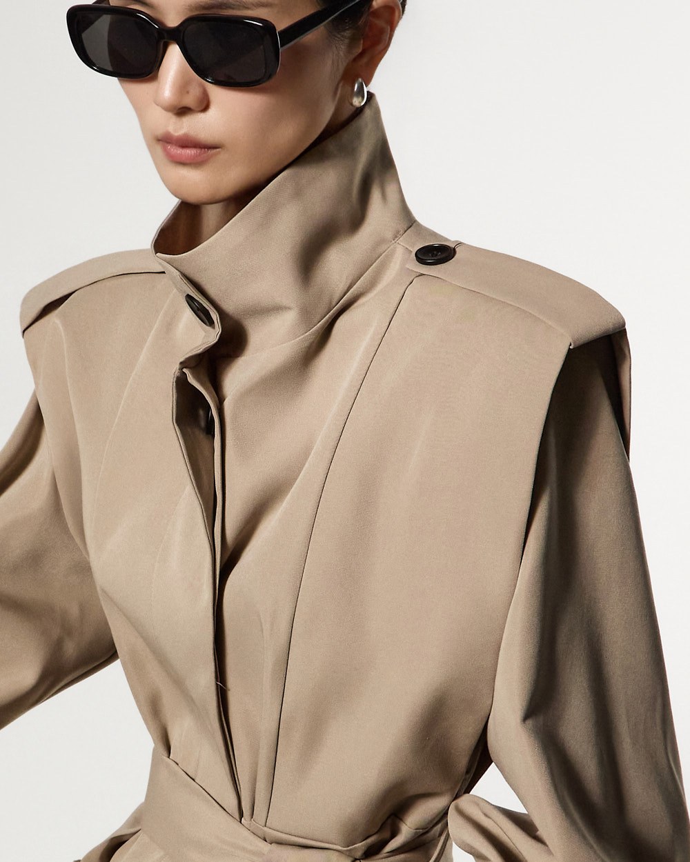 하이넥 트렌치 실루엣으로 클래식하면서도