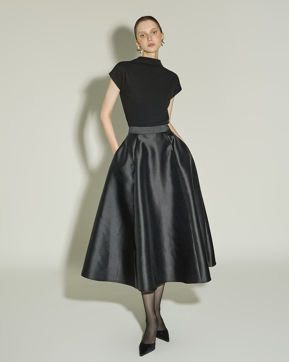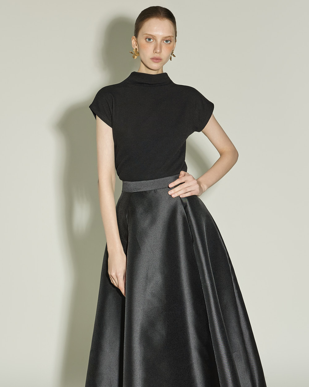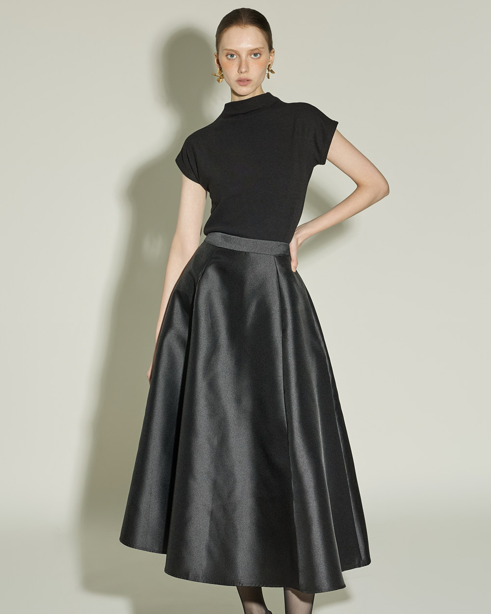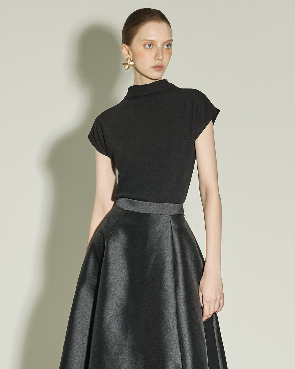 슬림하게 떨어지는 실루엣과 캡소매 디테일이